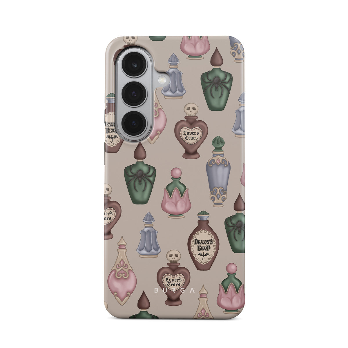 This design features: mystical potion bottles