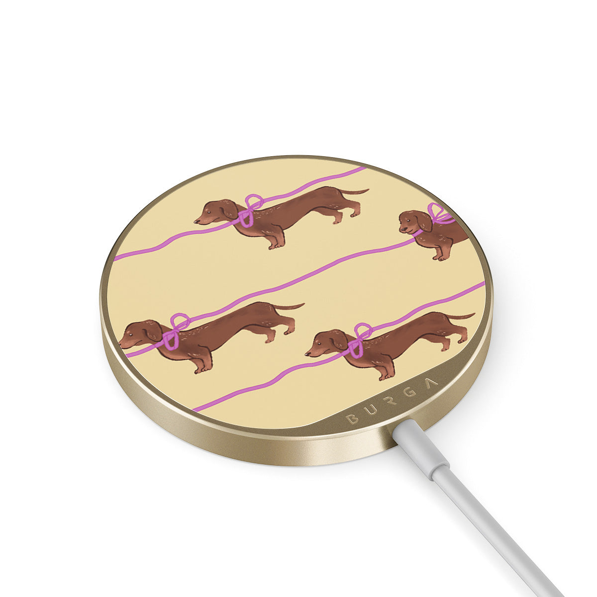 The 1.5m integrated cord makes it easy to charge wherever you are — at the office, chillin’ on the sofa, or killing time at the airport lounge. Plus, the BURGA glass back gives you 500+ prints to choose from, so your charger looks as good as your case.