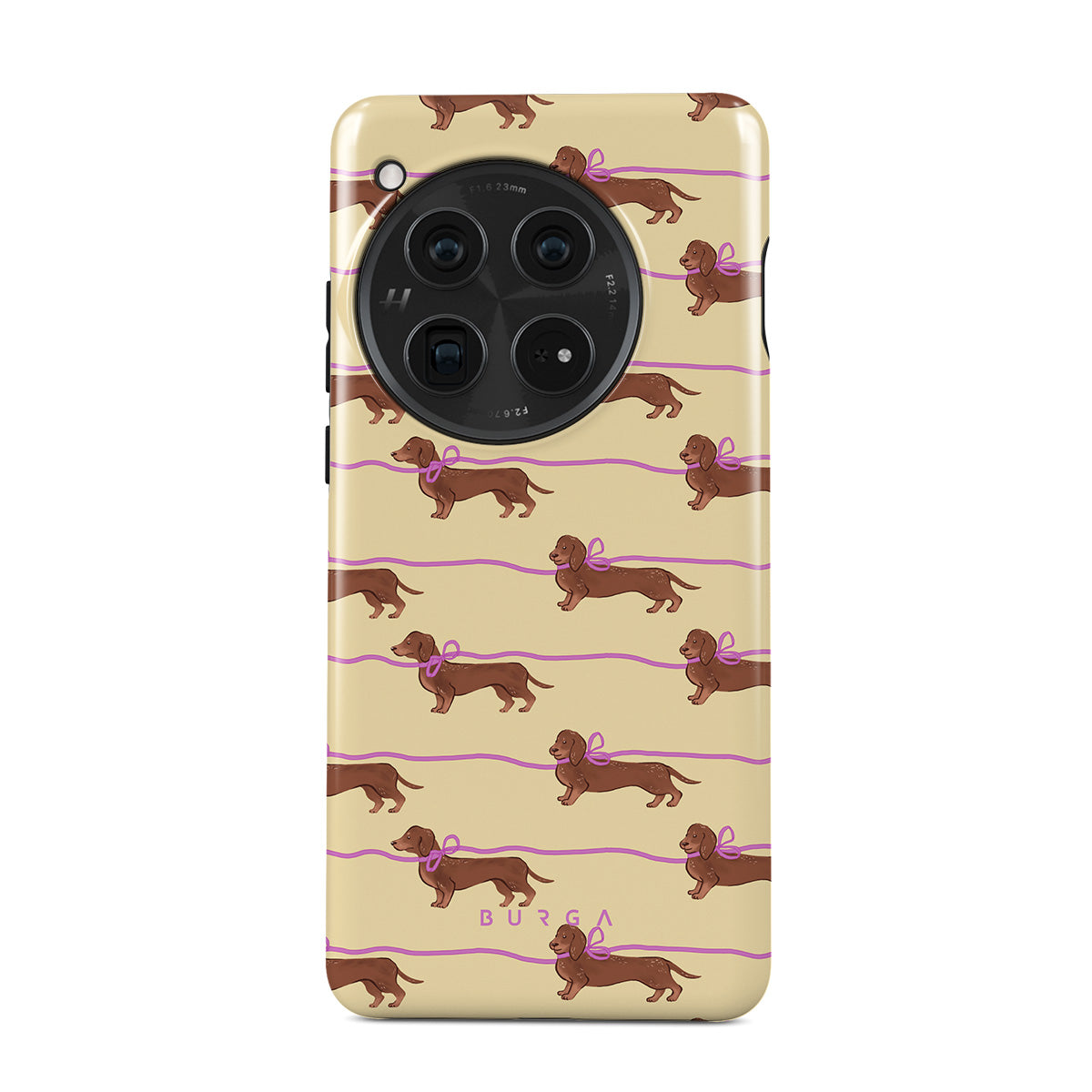 This OnePlus 12 phone case design doesn’t believe in time, only vibes. It features sassy sausage dogs with bows who, like you, are running 15 minutes behind—and blaming Mercury.