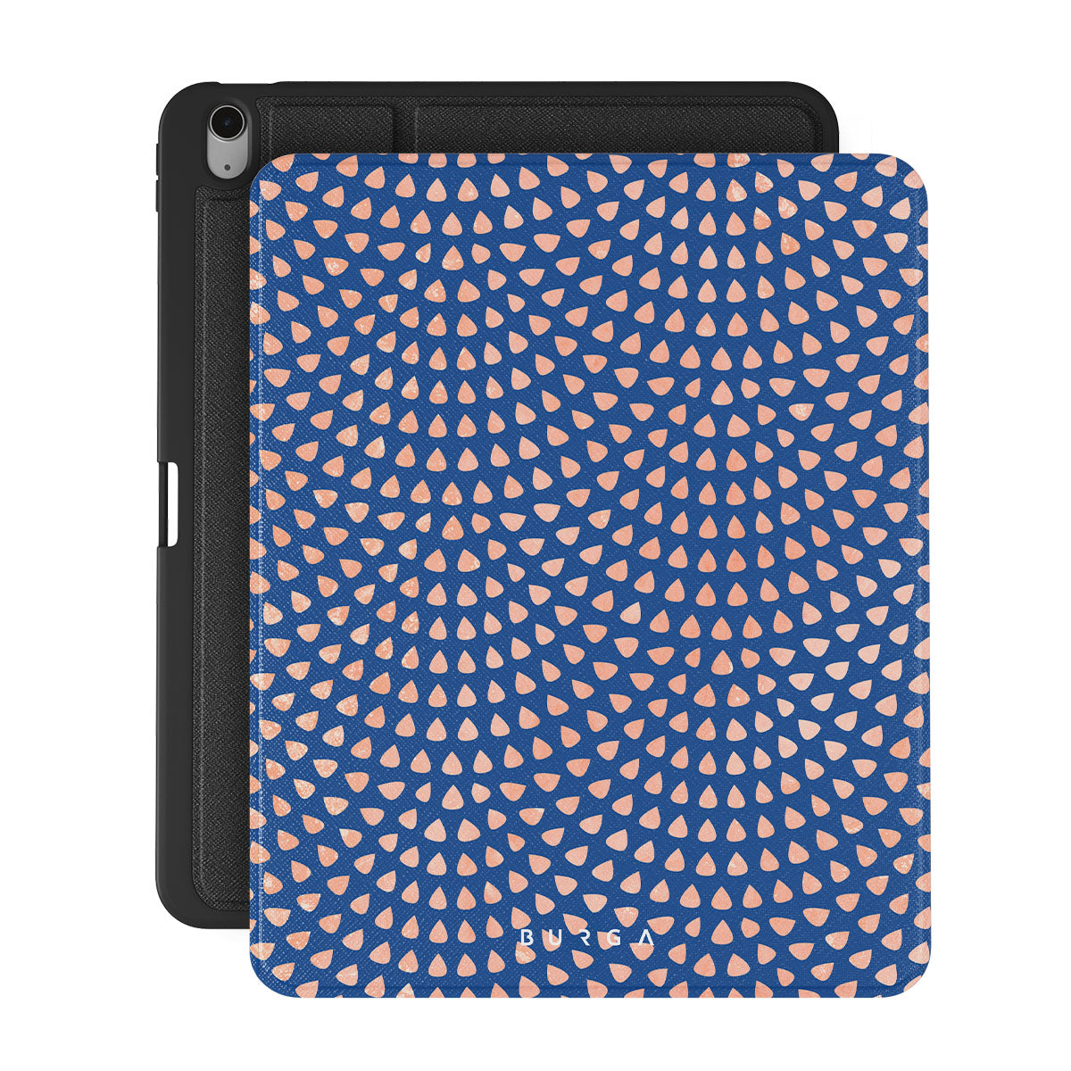 Rose gold teardrops meet a deep shade of blue in our Azure Waters iPad Air 13 (7th/6th Gen) folio case and create the duo worth taking with you every evening out. Add a touch of strictness with the symmetrical teardrops pattern paving the way and keeping your iPad out of harm's way with the case that is as protective as it is beautiful.
