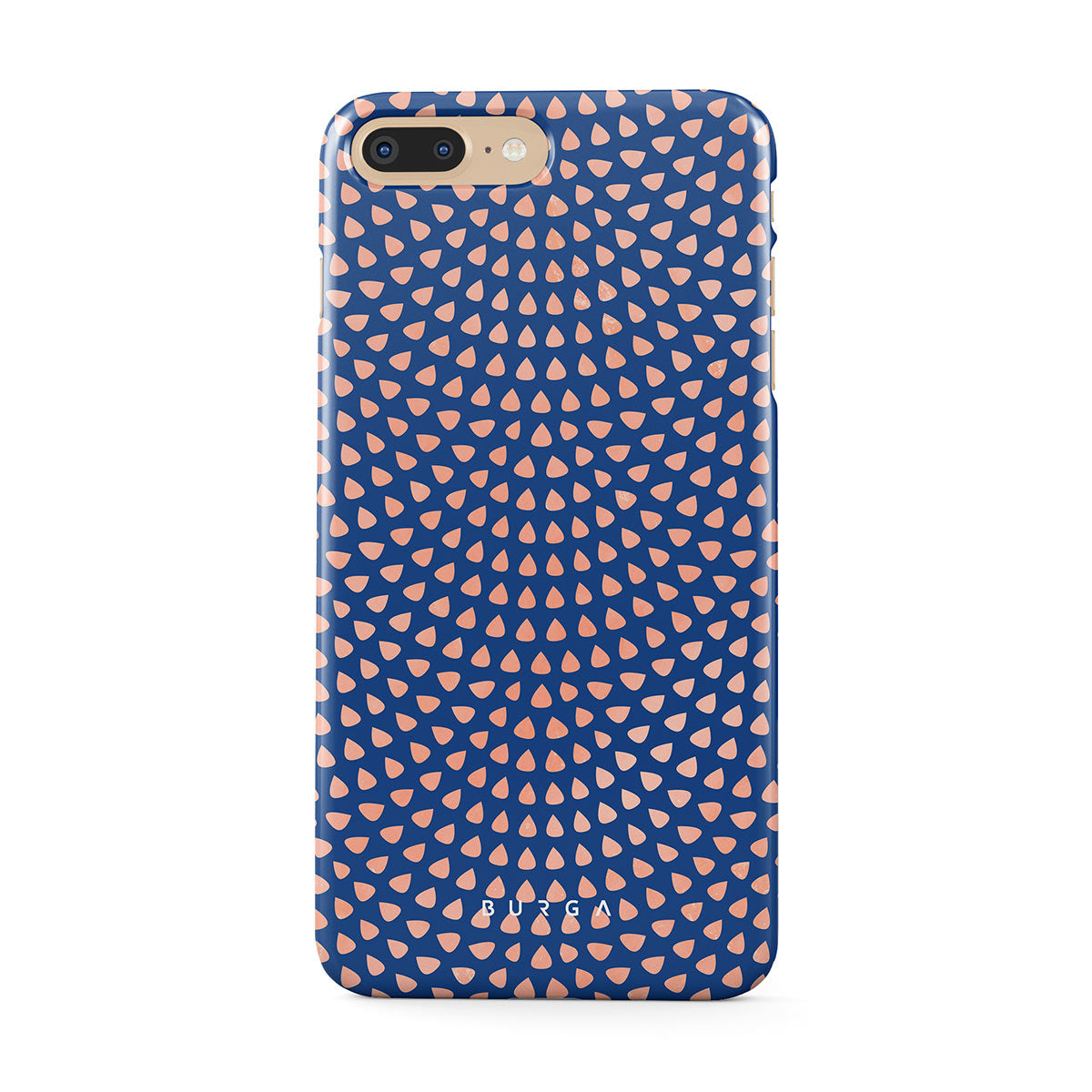 Rose gold teardrops meet a deep shade of blue in our Azure Waters iPhone 7 Plus / 8 Plus phone case and create the duo worth taking with you every evening out. Add a touch of strictness with the symmetrical teardrops pattern paving the way and keeping your phone out of harm's way with the case that is as protective as it is beautiful.