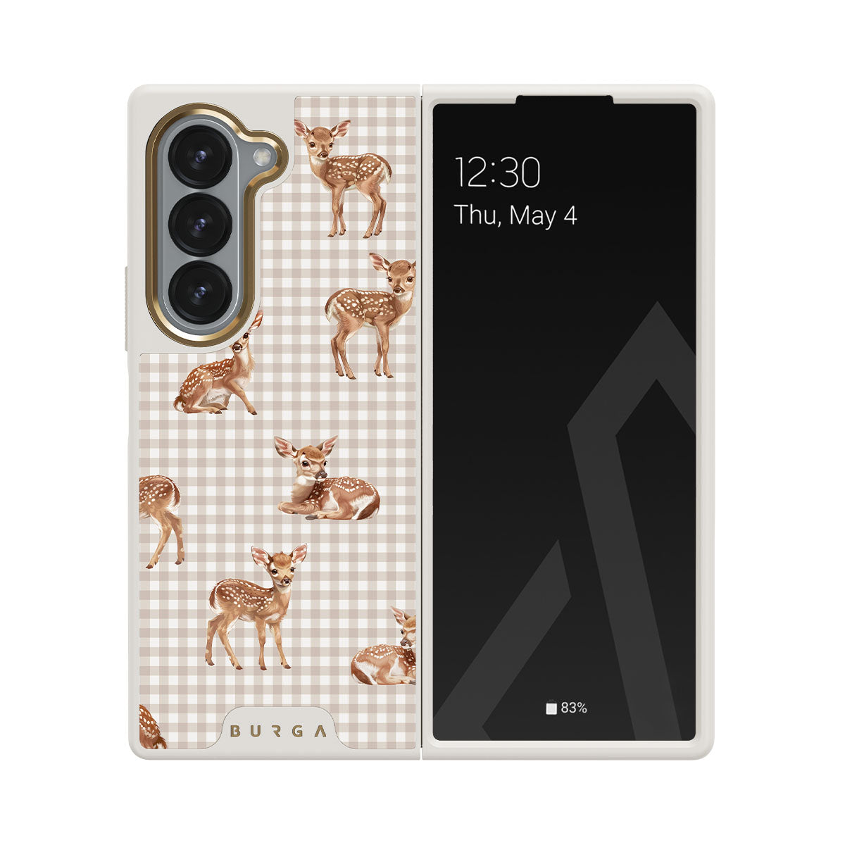 Gentle deers, frozen in time on a field of nostalgia, invite you to rediscover the playful innocence of quiet afternoons in the shade of old trees. Meet our Bambi Samsung Galaxy Z Fold 6 phone case design.