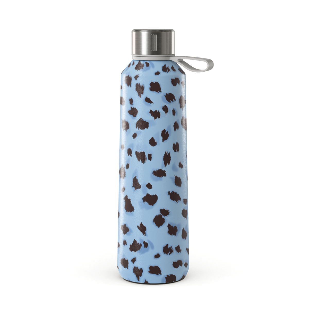 This design features: light blue background, animal print