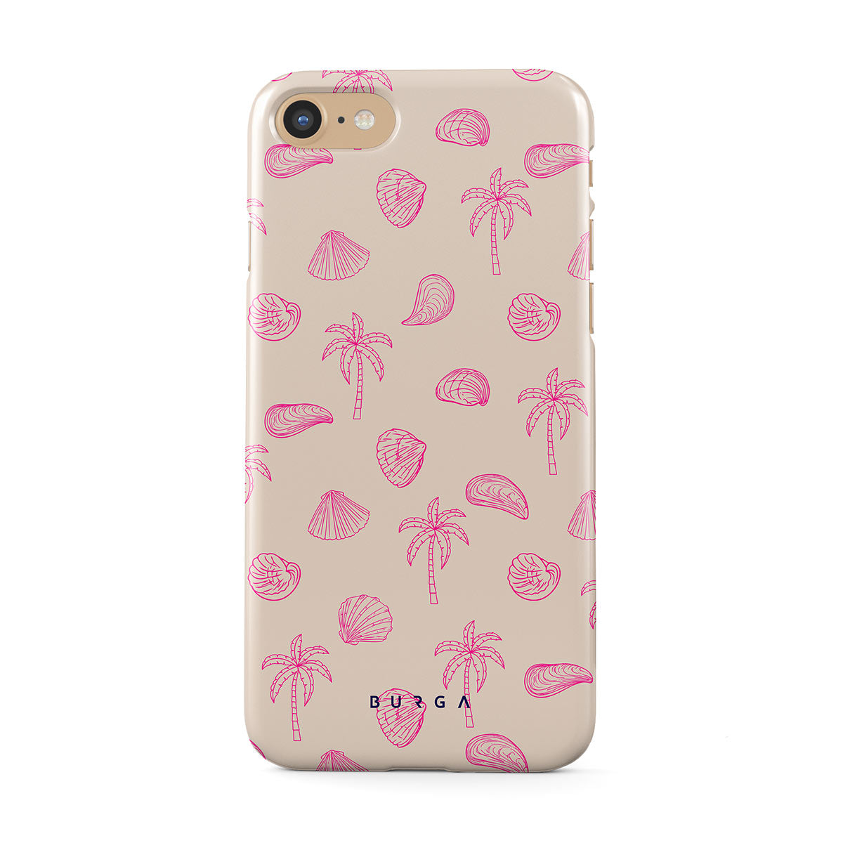 Lovely, beachy, and pink is what we can say about our Beach Please iPhone 7 / iPhone 8 phone case design. The playful pattern of palms and seashells will look cute in your summer selfies. Add that playful touch to your everyday life and keep your phone safe from scratches the sand can make!