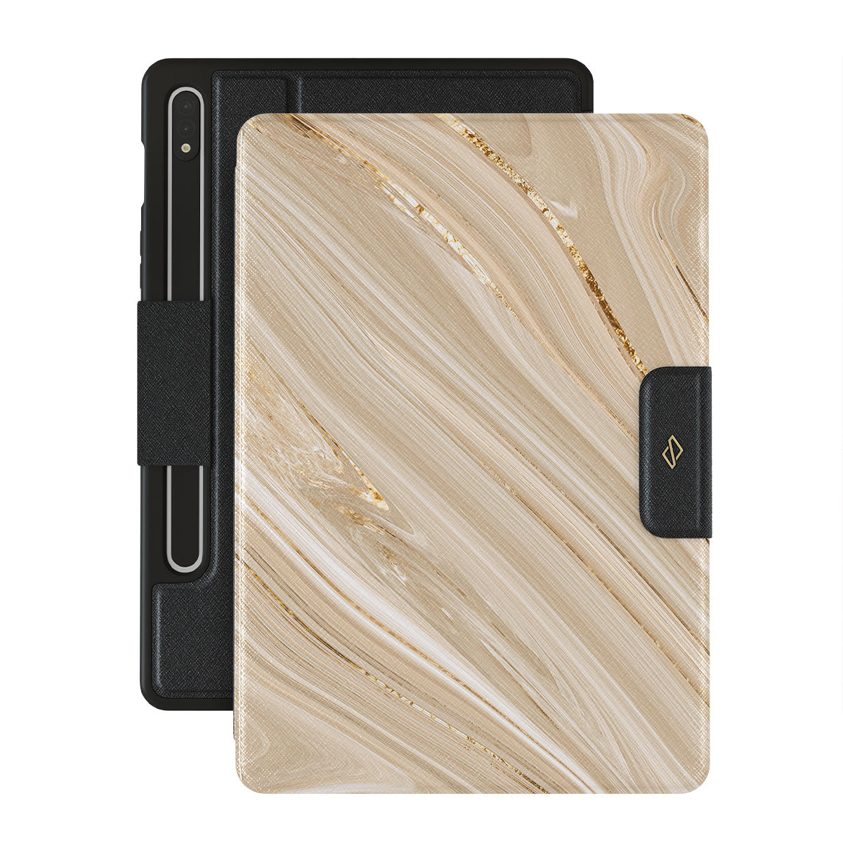 The Full Glam Samsung Galaxy Tab S8/S7 folio case exudes elegance and softness in the beige color scheme with golden accents. The delicate design of the phone case will enhance your style and keep your phone safe and sound while doing that.
