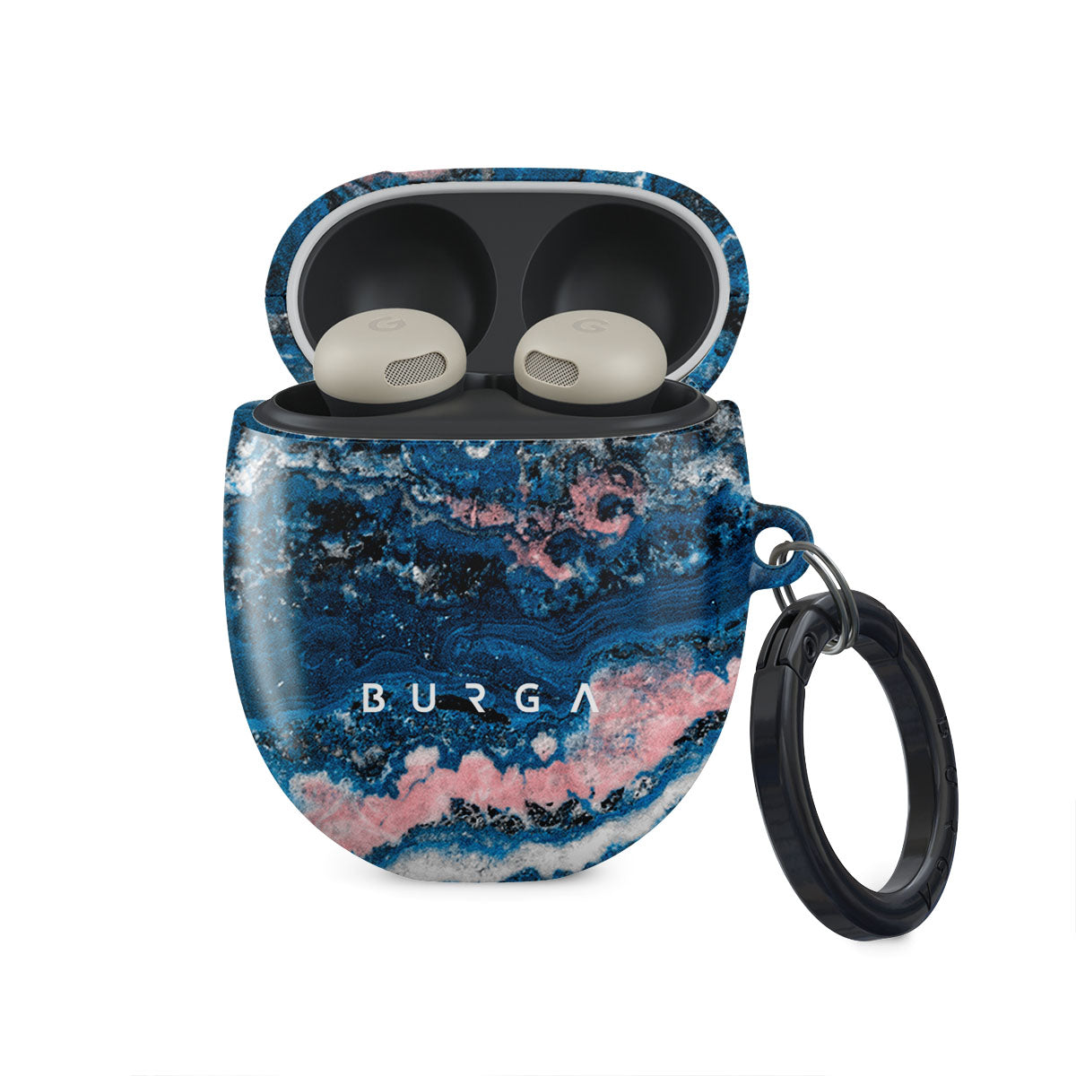 Electric indigo blue meets white and pastel pink swirls in a unique marble pattern of our Blue Lagoon Google Pixel Buds Pro 2 Case cover. The design will add a modern feel to your wardrobe while offering durable Pro 2tection from falls and scratches for your Google Pixel Buds Pro 2 Case. Our case fits perfectly snug around Google Pixel Buds Pro 2 2 . “Like a glove!” one might say. And it won’t disrupt the wireless charging capabilities of the newer model. There’s even an LED light indicator to Pro 2ve it (don’t worry, wired charging still works, too). When fitted, the BURGA case will Pro 2tect the delicate Google Pixel Buds Pro 2 Case beneath it from scratches, bumps, and drops while remaining scratch-free itself. Our signature design pattern prints are High Quality, and will never peel or fade away- thanks to our unique printing technology. And finally, a handy carabiner is there to make your life easier and more convenient: just snap it around your keys or belt loop and tackle the day head-on. Your music is right there by your side when you need it.