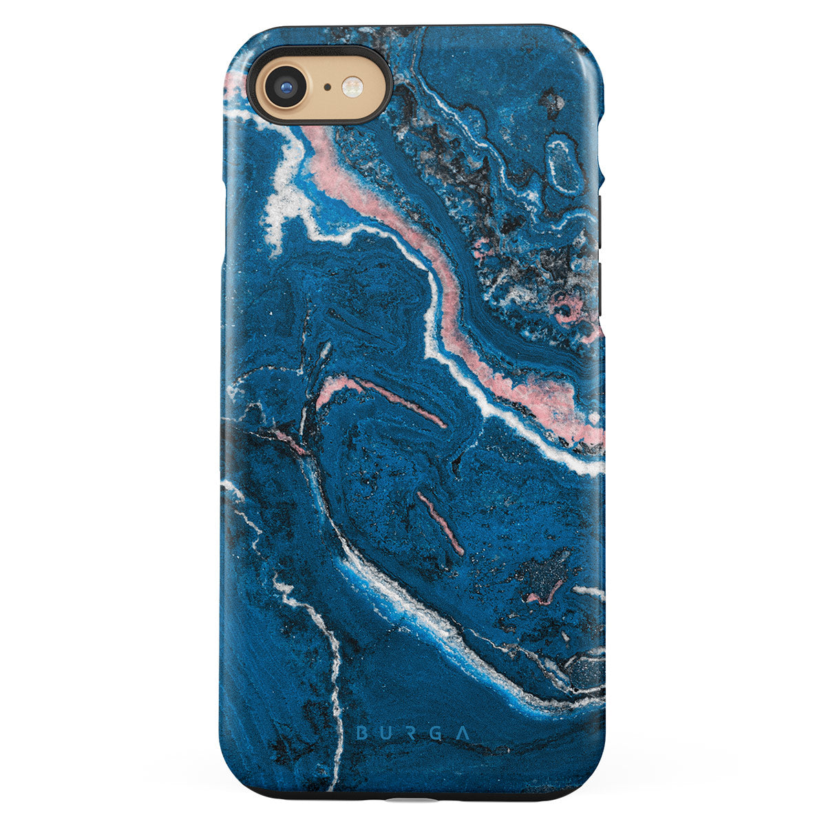 Electric indigo blue meets white, and pastel pink swirls in a unique marble pattern in our Blue Lagoon iPhone 7 / iPhone 8 phone case. The modern take on a blue marble trend will look aesthetically pleasing on your device while offering durable protection from any falls.