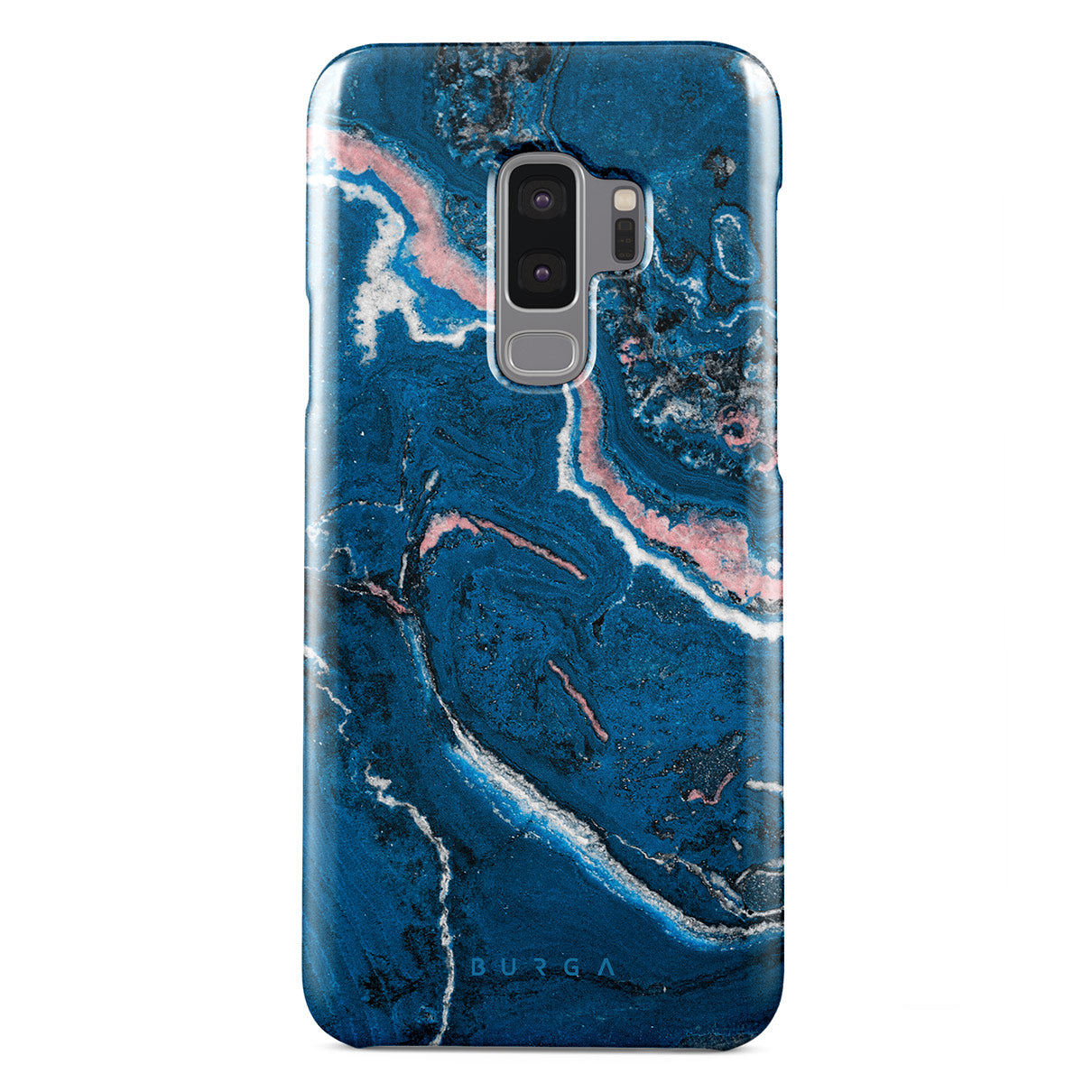 Electric indigo blue meets white, and pastel pink swirls in a unique marble pattern in our Blue Lagoon Samsung Galaxy S9 Plus phone case. The modern take on a blue marble trend will look aesthetically pleasing on your device while offering durable protection from any falls.