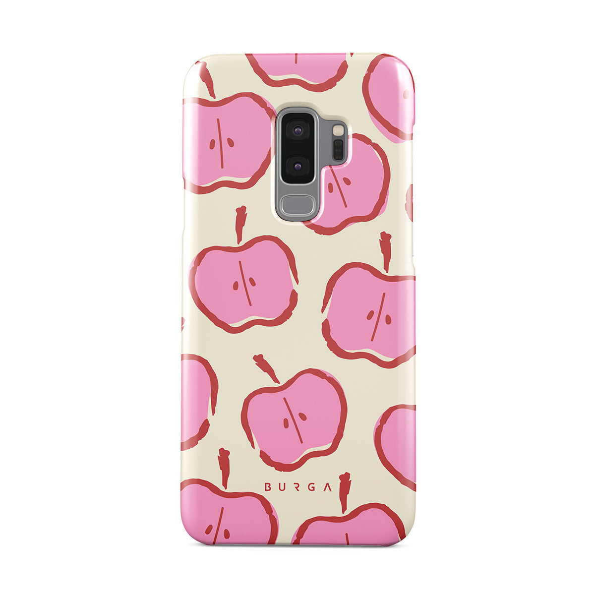 Our Bon Appétit Samsung Galaxy S9 Plus phone case design makes every day feel like a magical adventure filled with sweet surprises. The playful pink hues of the apples stand out brilliantly against the serene cream background, creating a captivating and enchanting visual.