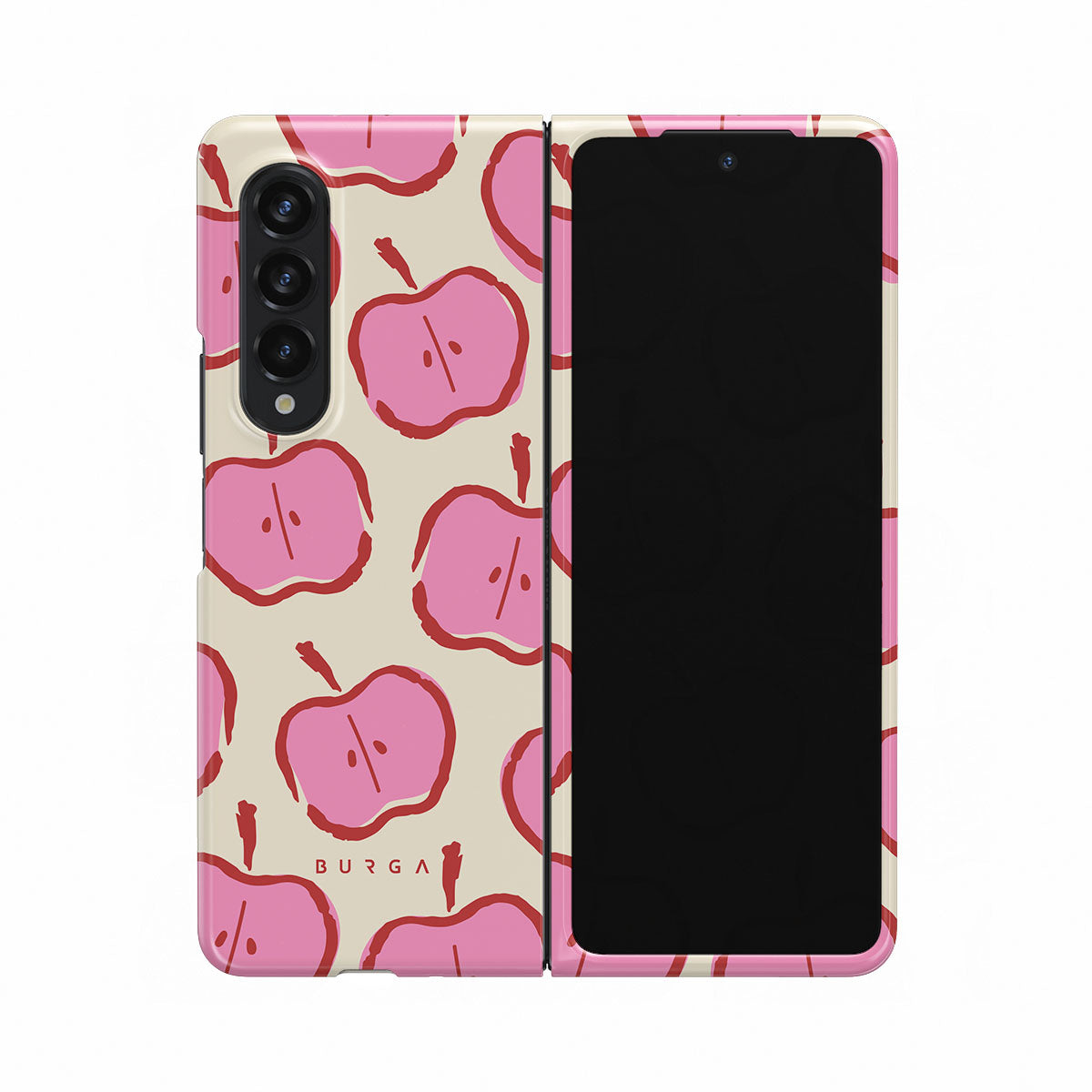 Our Bon Appétit Samsung Galaxy Z Fold 3 phone case design makes every day feel like a magical adventure filled with sweet surprises. The playful pink hues of the apples stand out brilliantly against the serene cream background, creating a captivating and enchanting visual.