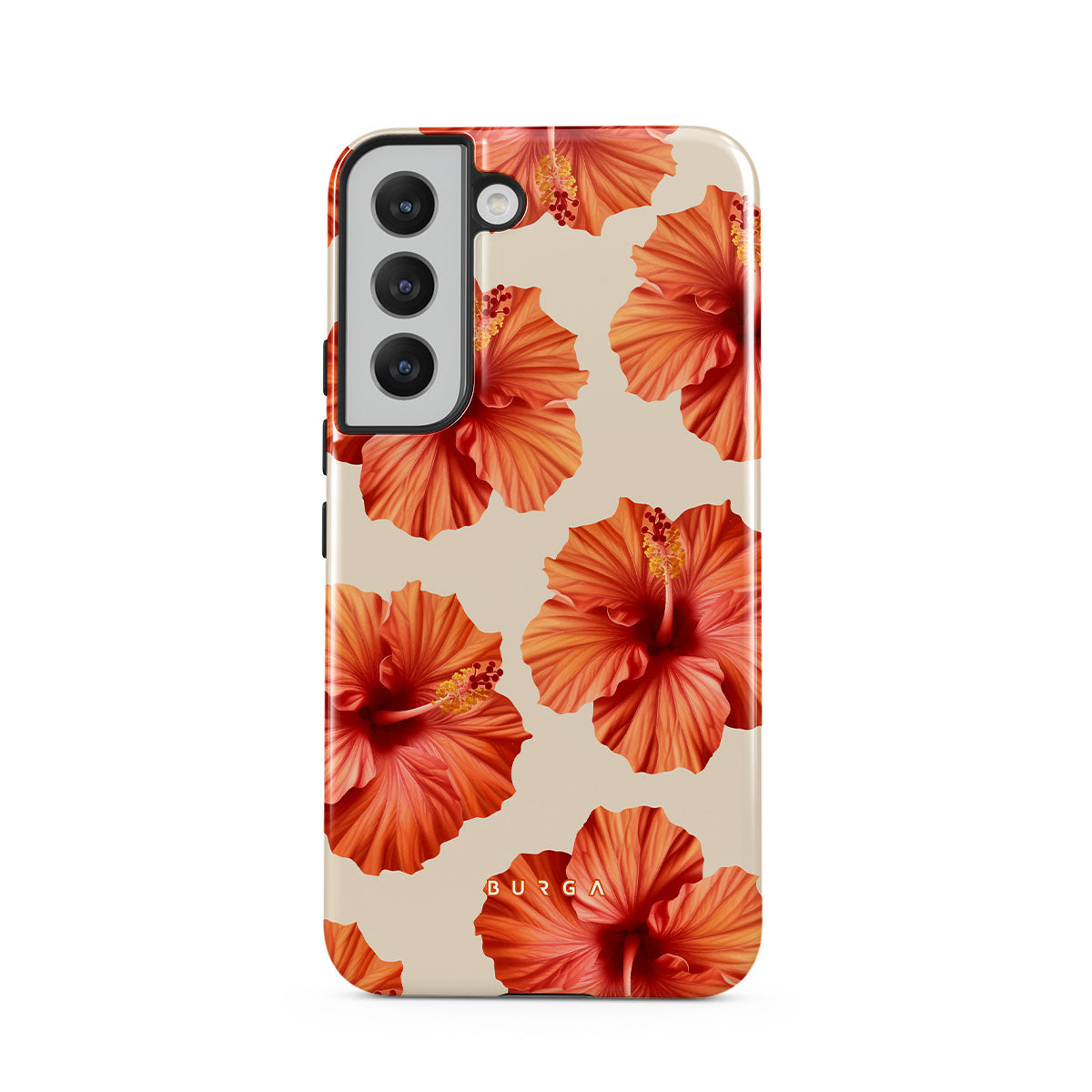 Transport yourself to a lush tropical escape with Bonita. Featuring bold, beautiful hibiscus blooms that pop against a creamy backdrop, this Samsung Galaxy S22 phone case design is perfect for those who dream of vibrant, floral beauty and exotic adventures.