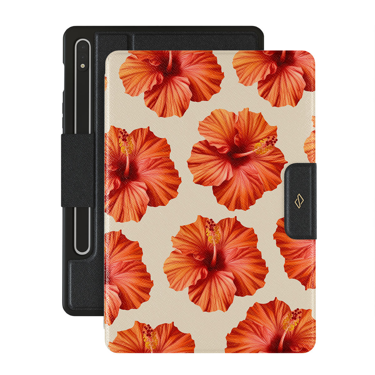 Transport yourself to a lush tropical escape with Bonita. Featuring bold, beautiful hibiscus blooms that pop against a creamy backdrop, this Samsung Galaxy Tab S8/S7 folio case design is perfect for those who dream of vibrant, floral beauty and exotic adventures.