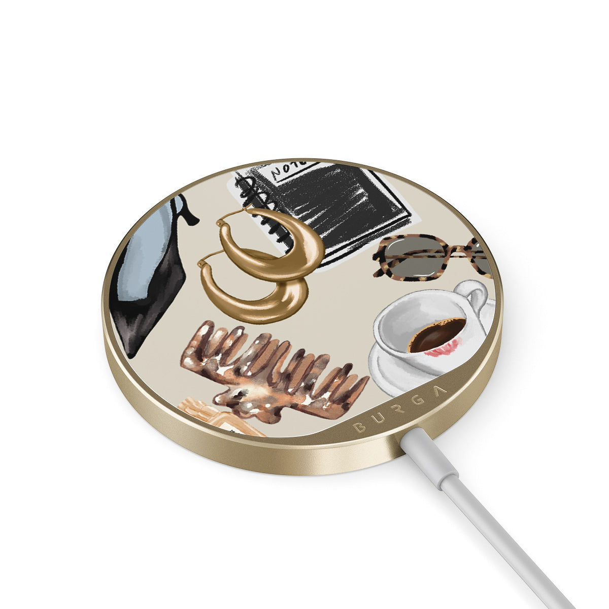 The 1.5m integrated cord makes it easy to charge wherever you are — at the office, chillin’ on the sofa, or killing time at the airport lounge. Plus, the BURGA glass back gives you 500+ prints to choose from, so your charger looks as good as your case.