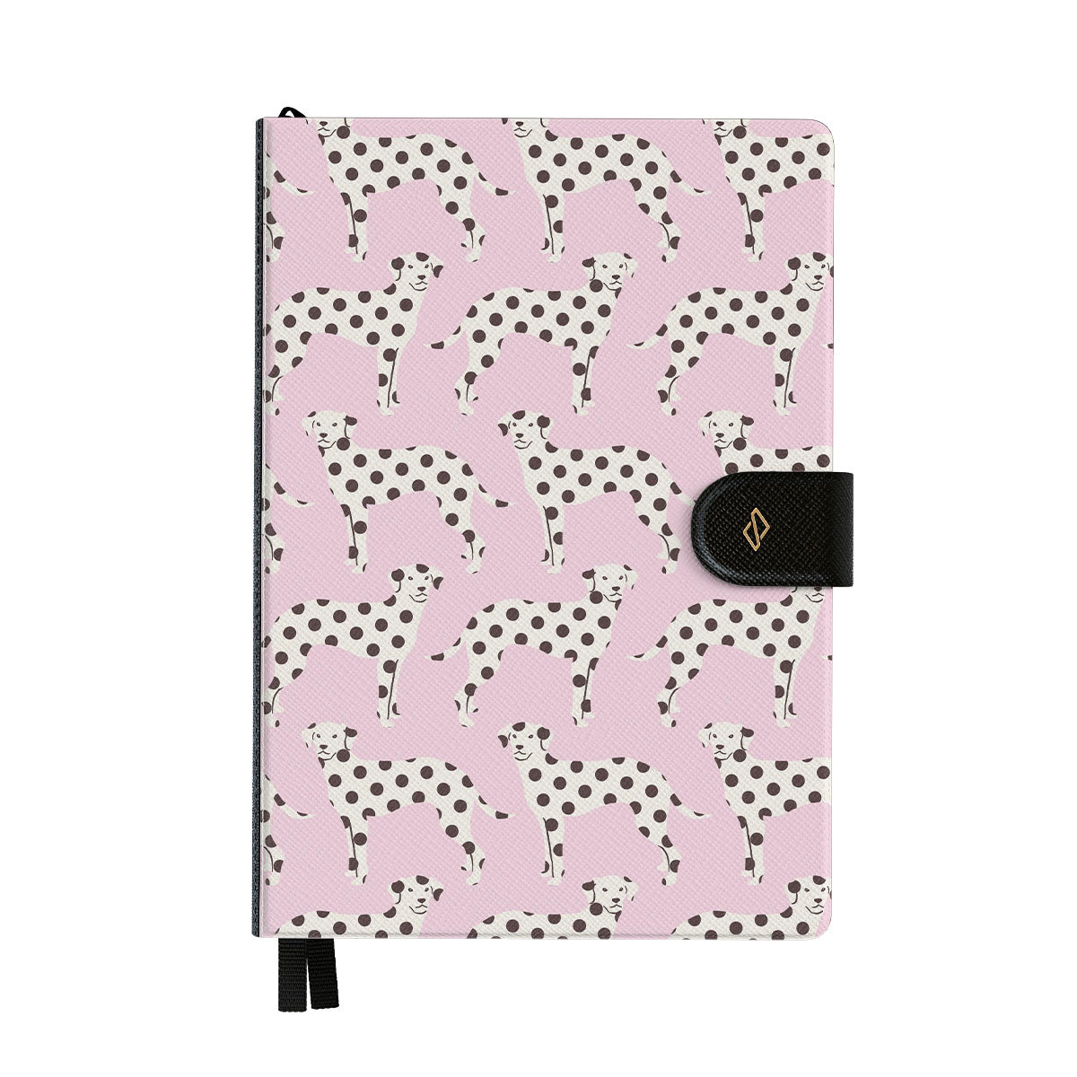 This design features: dalmatians on a baby pink background, dogs.