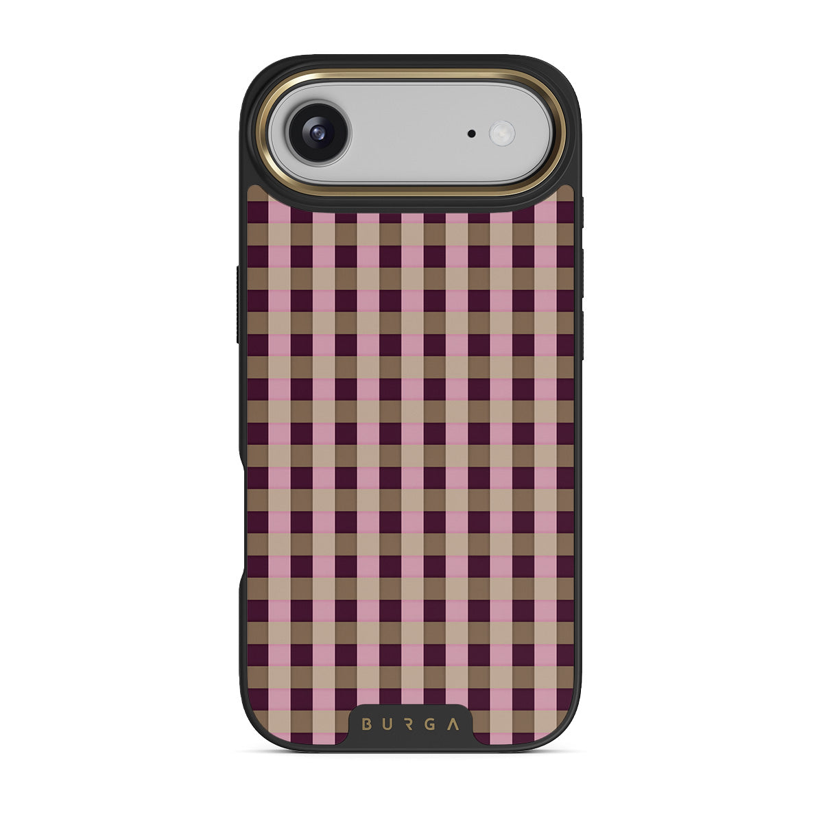 This design features: pink and burgundy plaid pattern, modern checkered style.