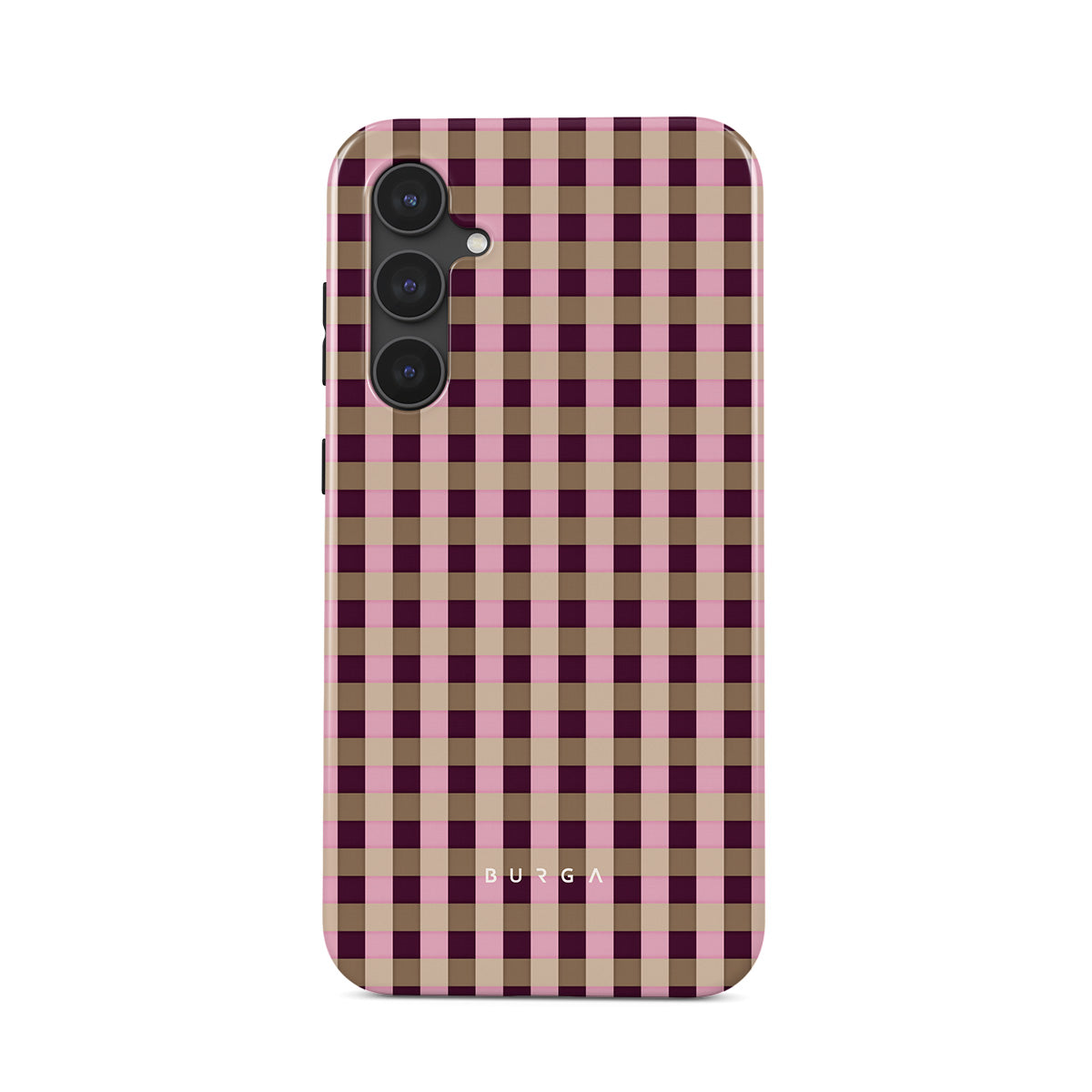 This design features: pink and burgundy plaid pattern, modern checkered style.