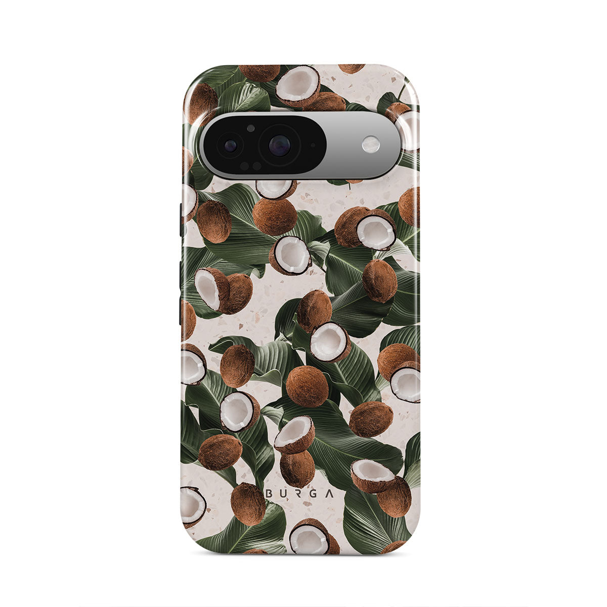 Coconut Crush Google Pixel 9 phone case showcases a soft creme color design with a playful addition of coconuts on top. The unexpected design duo will add a touch of tropical playfulness to your style while offering heavy-duty protection for your cell phone.