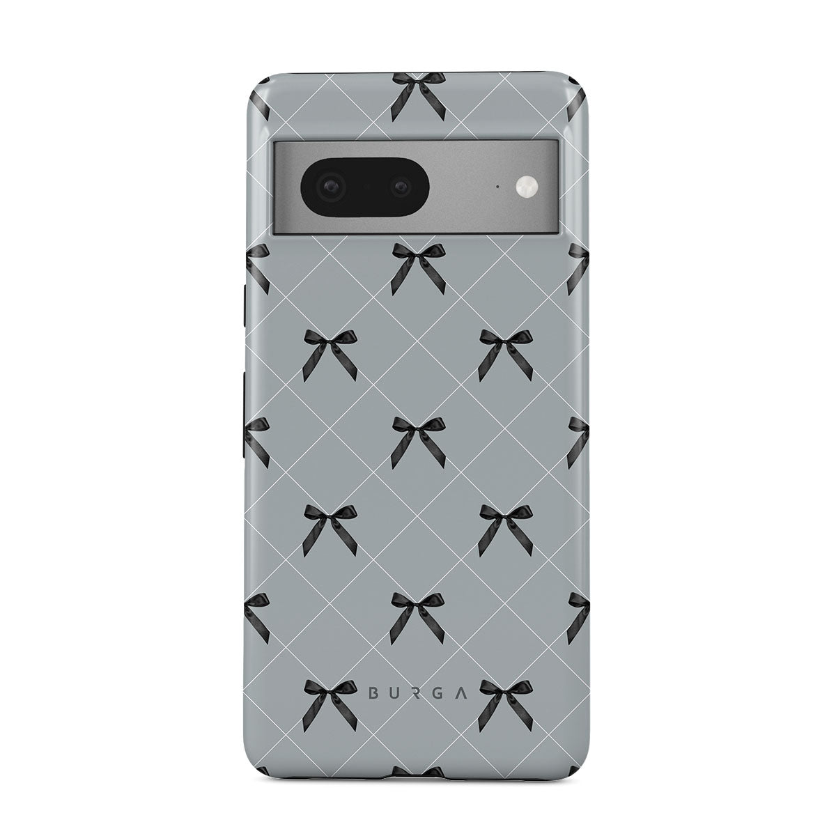 A subtle hint to a world of dance and soft melodies. Crisscrossing bows over a muted gray tone capture the flirtatious essence of the coquette-core aesthetic. Playful and sweet, our Coquette Google Pixel 7 phone case design is perfect for those who find beauty in the details.