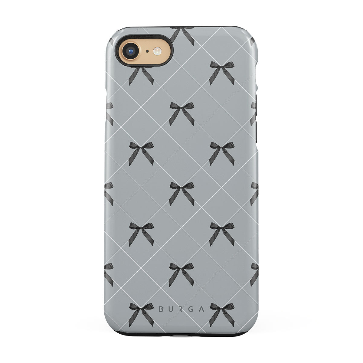 A subtle hint to a world of dance and soft melodies. Crisscrossing bows over a muted gray tone capture the flirtatious essence of the coquette-core aesthetic. Playful and sweet, our Coquette iPhone SE (2022) phone case design is perfect for those who find beauty in the details.
