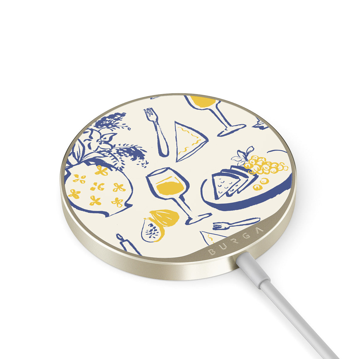 The 1.5m integrated cord makes it easy to charge wherever you are — at the office, chillin’ on the sofa, or killing time at the airport lounge. Plus, the BURGA glass back gives you 500+ prints to choose from, so your charger looks as good as your case.