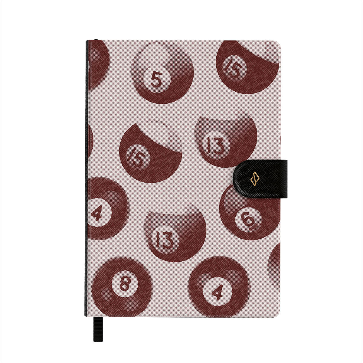 This design features: pool balls, numbers
