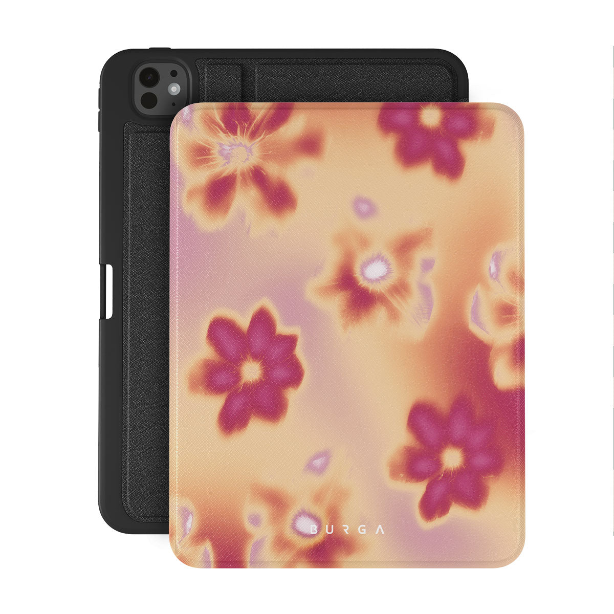 Get lost in the allure of our Divine folio case design. Picture blossoms bathed in fiery hues of pink and orange, each seemingly charged with life's raw energy. Set against a canvas that radiates power and warmth, these flowers offer more than just beauty; they resonate with the essence that binds us all.