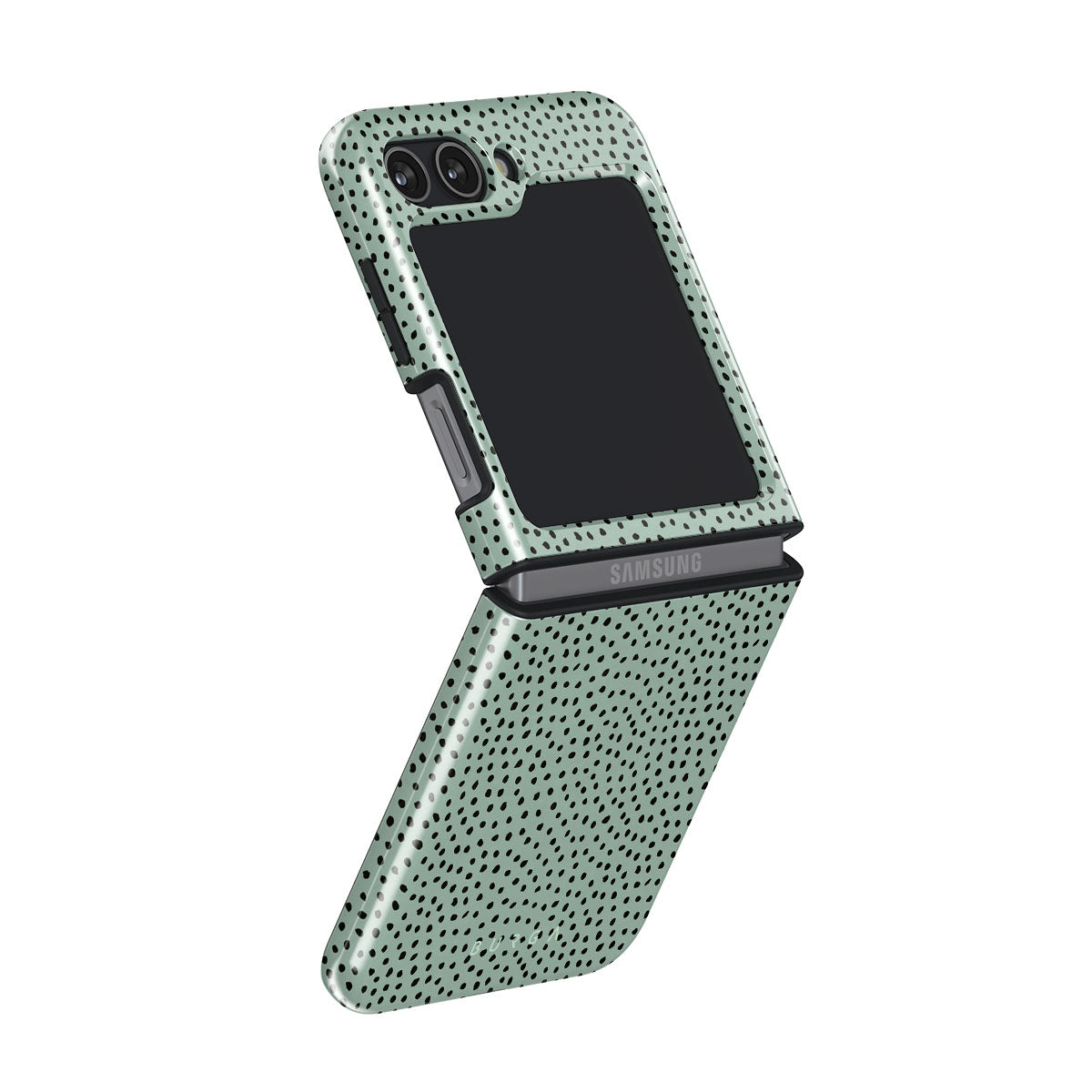 Bring some freshness and excitement to the warm days coming with our pretty Mint Gelato Samsung Galaxy Z Flip 5 dots phone case. With the trendy dotted pattern, make your phone a real eye candy while protecting it from dangerous falls.