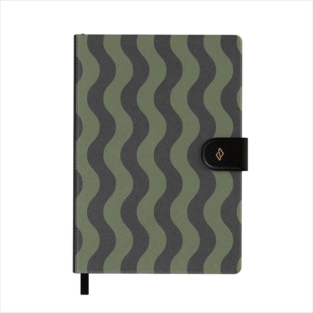 Features well-detailed BURGA patterns to a vegan faux leather front cover. Topped with an elegant black ribbon page marker.