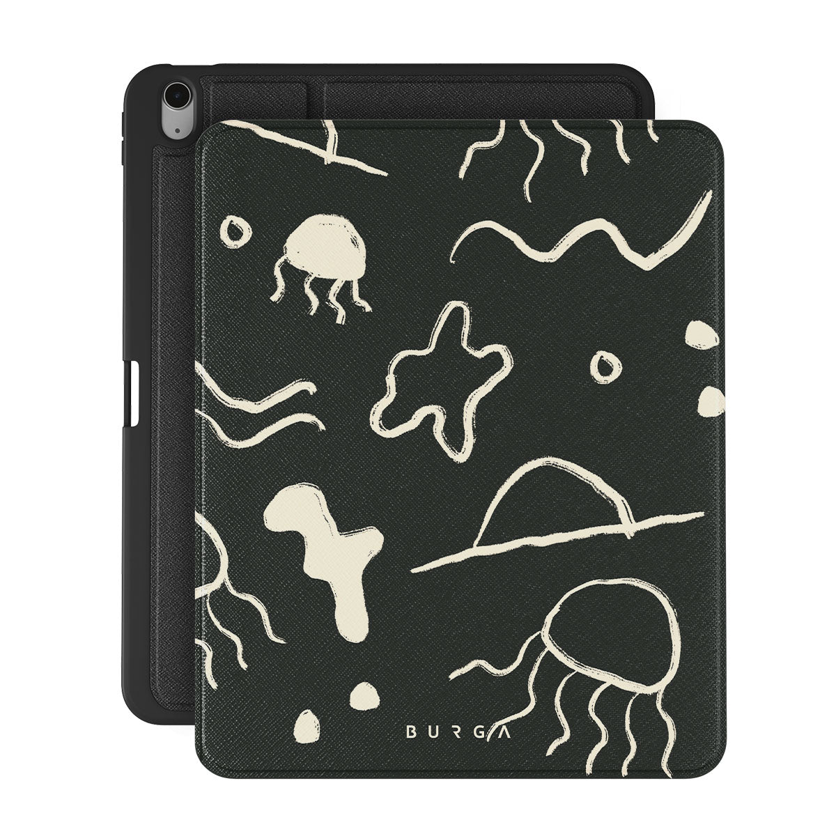 Our Eclipse iPad Air 13 (7th/6th Gen) folio case reflects the enigmatic beauty of the ocean during a solar eclipse. The dark hues and bright accents represent how the light dances on the water, while the waves and jellyfish capture the serene yet dynamic nature of the ocean.