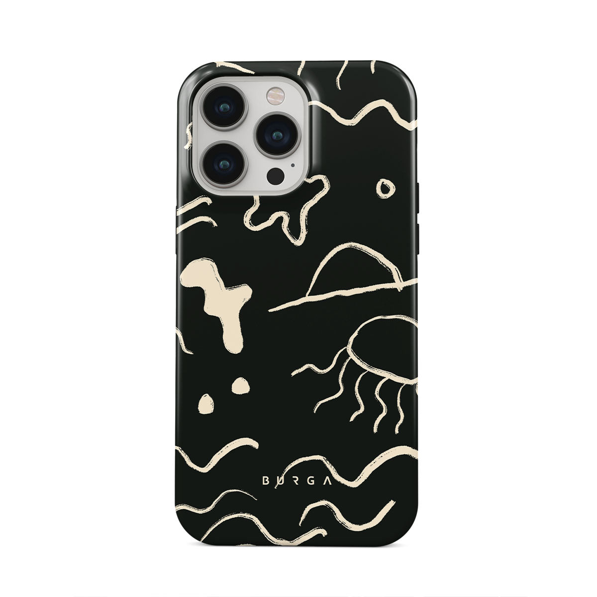 Our Eclipse iPhone 13 Pro design reflects the enigmatic beauty of the ocean during a solar eclipse. The dark hues and bright accents represent how the light dances on the water, while the waves and jellyfish capture the serene yet dynamic nature of the ocean.