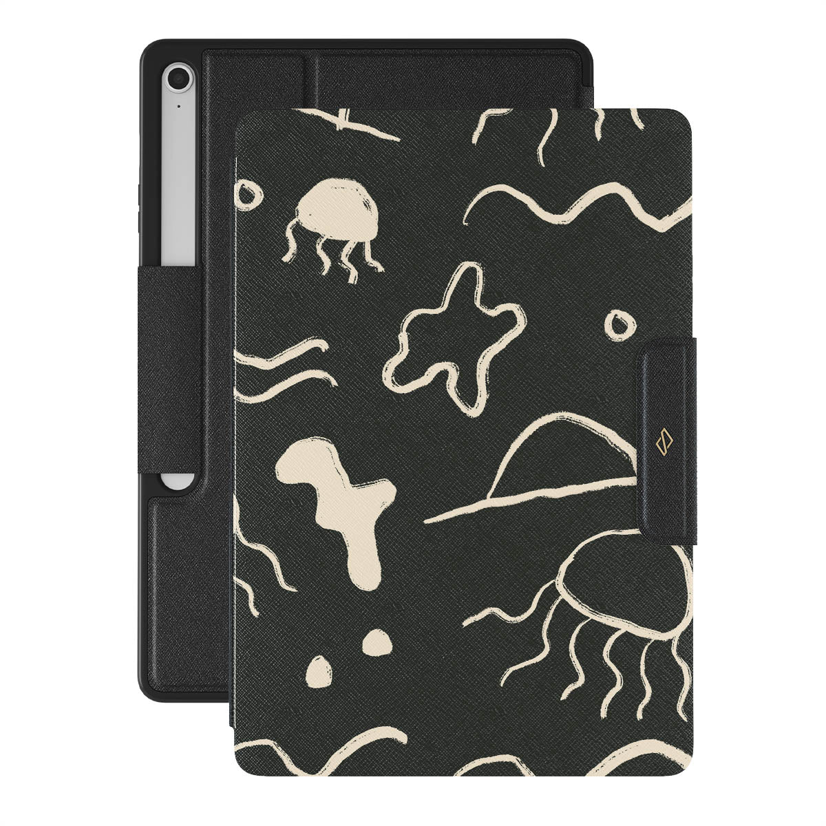 Our Eclipse Samsung Galaxy Tab S10+ FE folio case reflects the enigmatic beauty of the ocean during a solar eclipse. The dark hues and bright accents represent how the light dances on the water, while the waves and jellyfish capture the serene yet dynamic nature of the ocean.