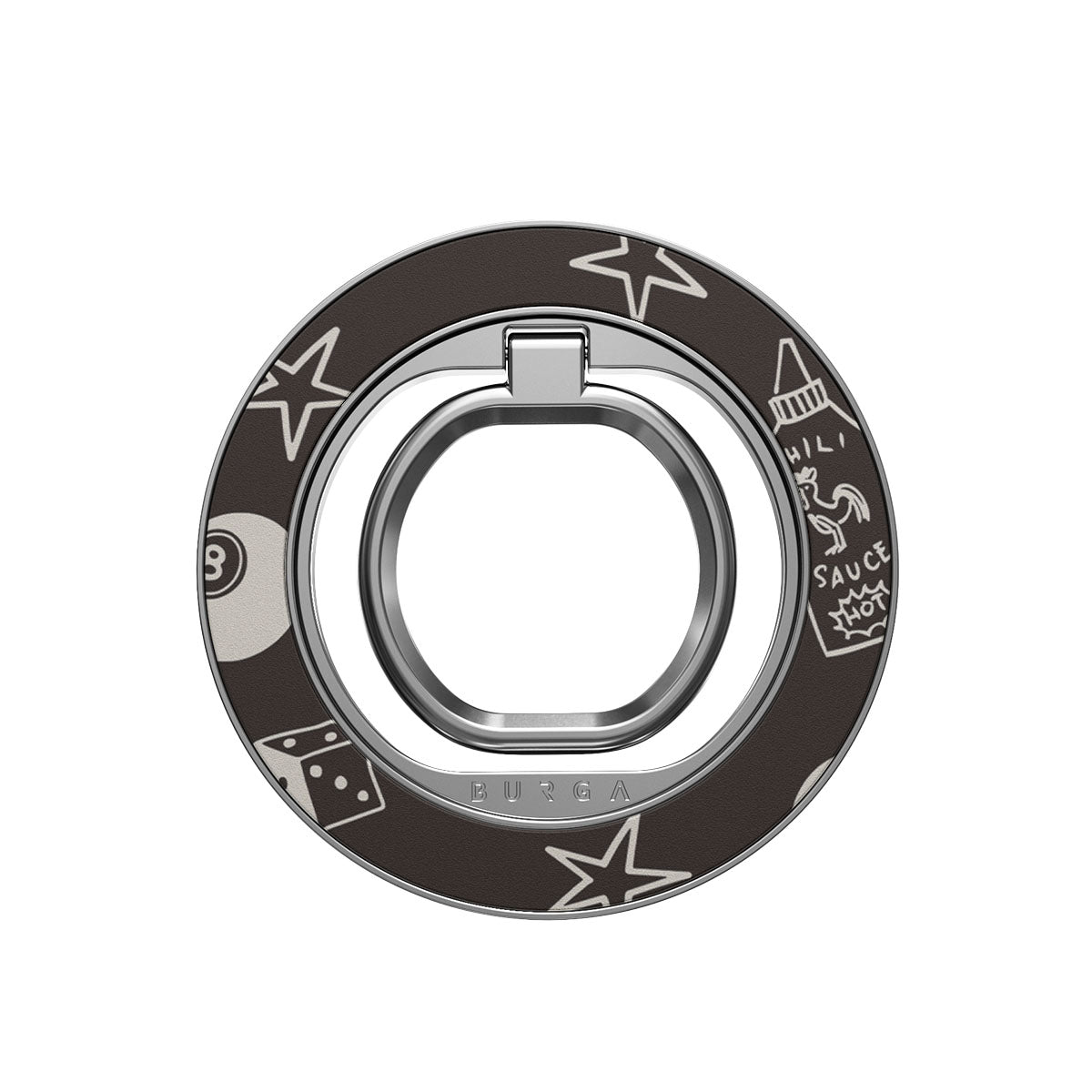 This magnetic ring holder snaps into place with a satisfying click—no adhesives, no hassle. Use it as a grip for one-handed scrolling, a stand for hands-free content, or a statement piece that matches your BURGA case perfectly.