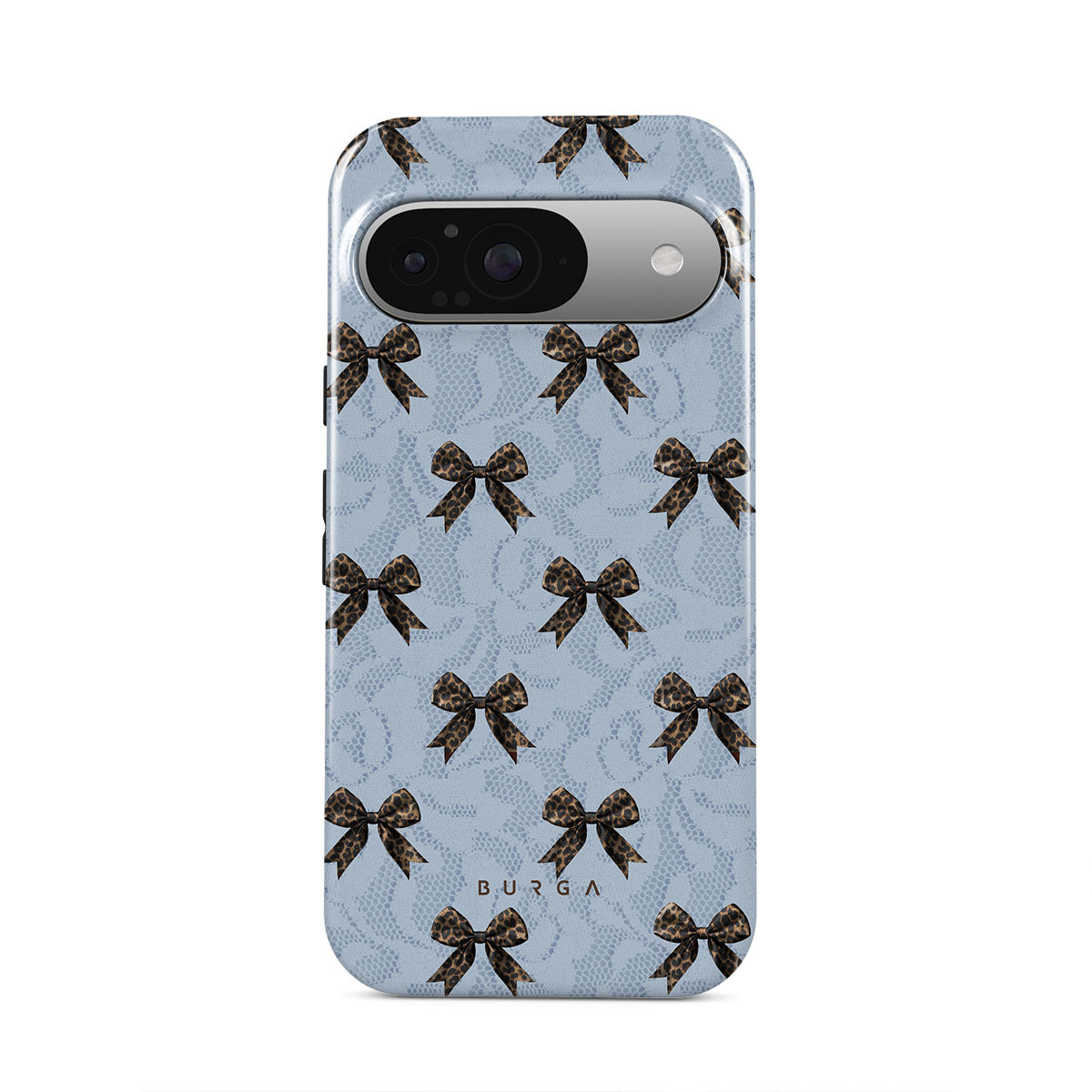 For those who command attention with subtle elegance, our Fashionista Google Pixel 9 phone case design is your go-to. A soft blue background, accented by dark grey bows and subtle lace patterns, exudes polished, effortless style. It's quiet confidence with a hint of charm.