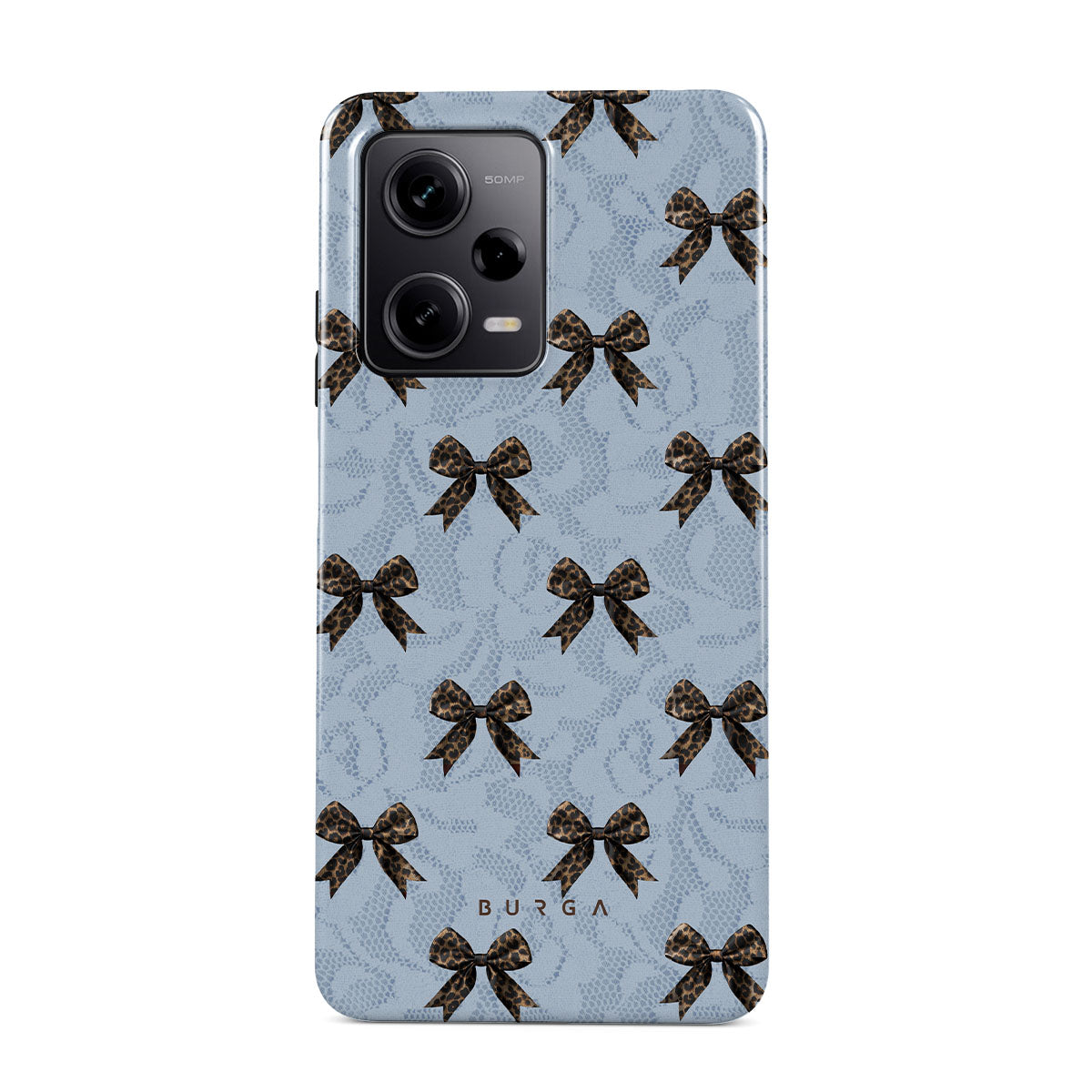 For those who command attention with subtle elegance, our Fashionista Xiaomi Redmi Note 12 Pro+ 5G phone case design is your go-to. A soft blue background, accented by dark grey bows and subtle lace patterns, exudes polished, effortless style. It's quiet confidence with a hint of charm.