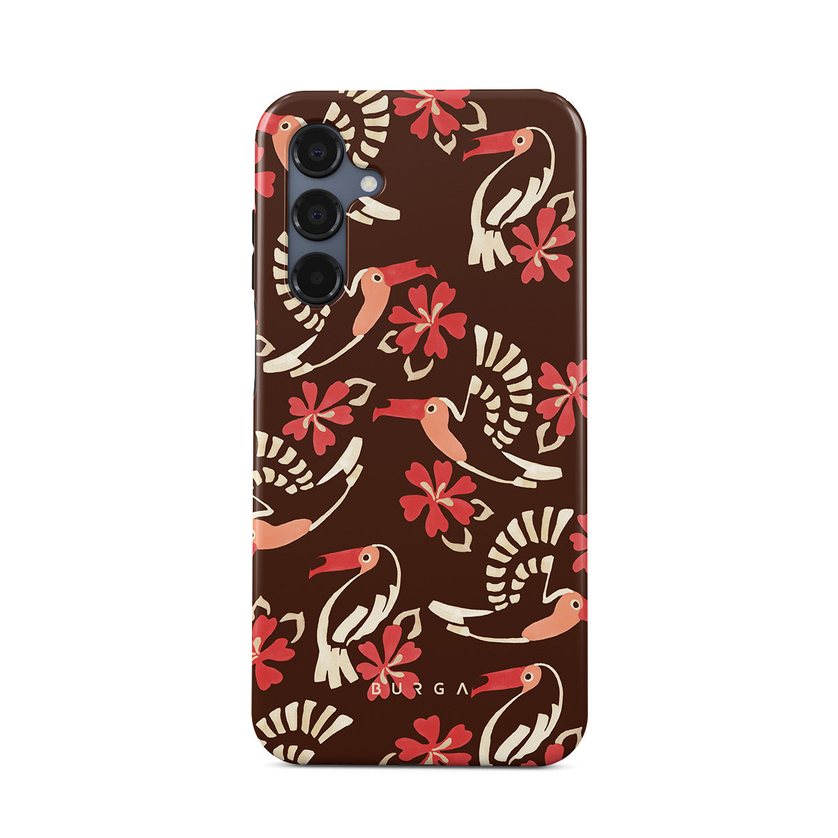A jungle rave. Parrots, florals, bursts of red and cream—like someone threw a party in the rainforest and forgot to send you the invite. This Samsung Galaxy A16 phone case design is your RSVP.