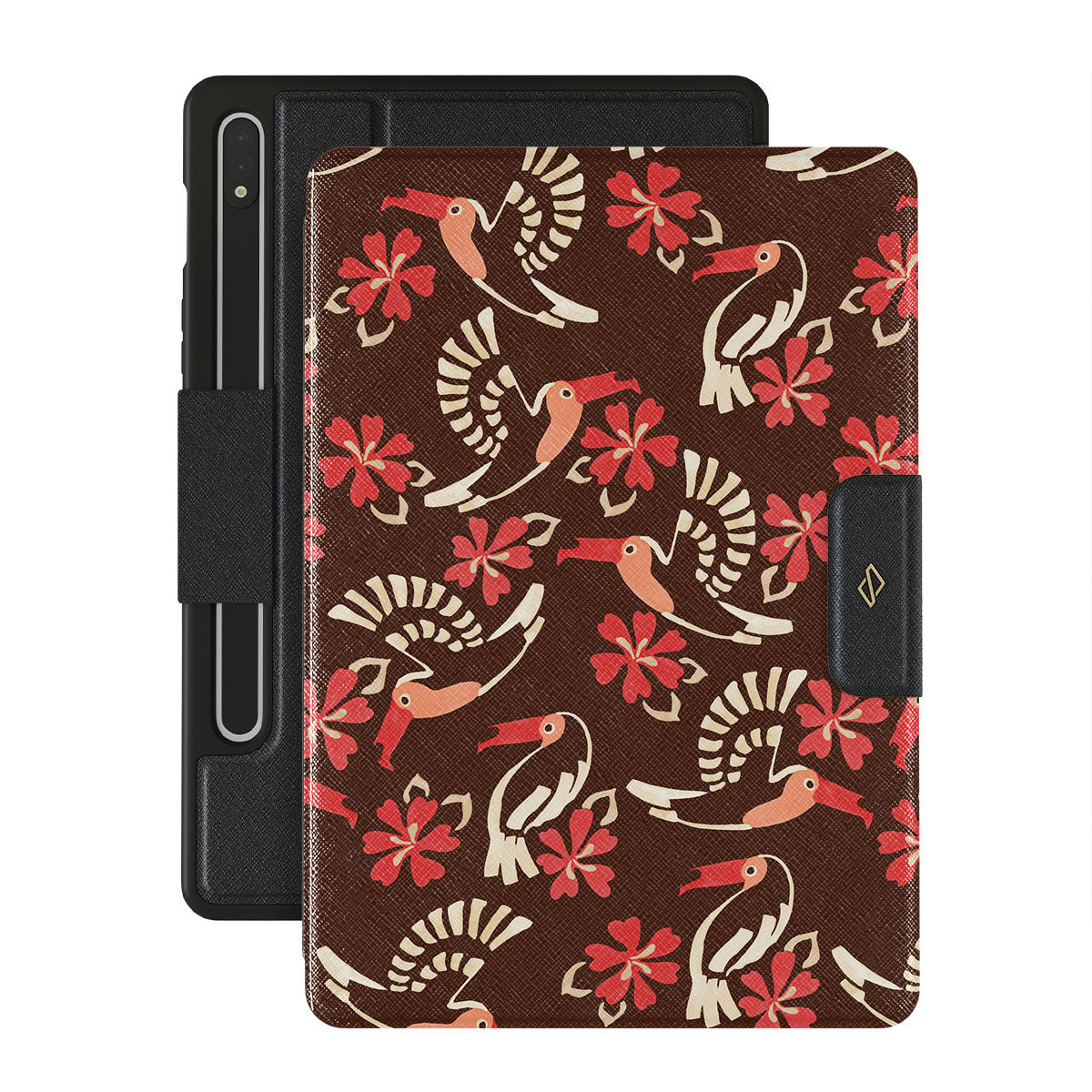 This design features: tropical birds, flowers, rainforest-inspired pattern