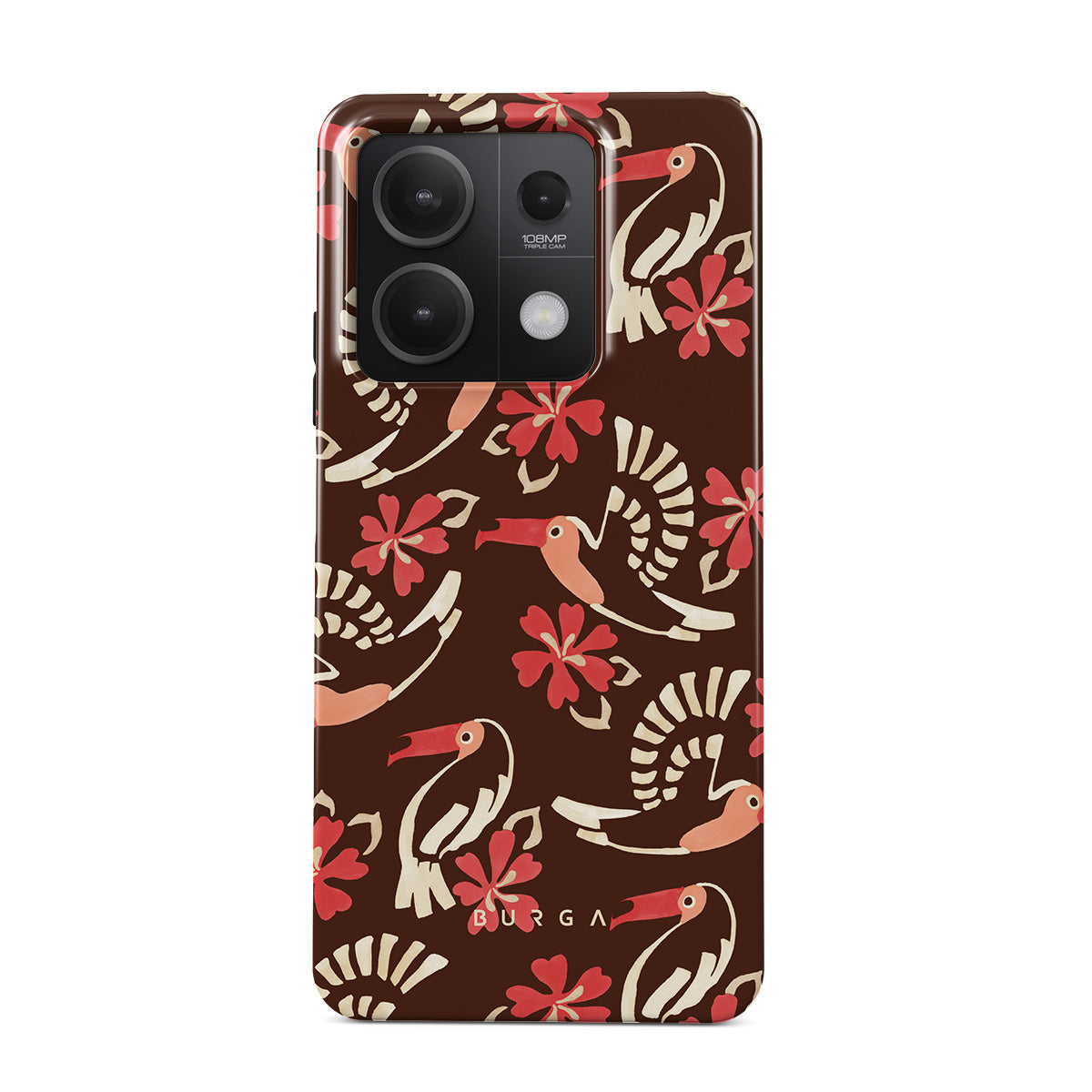 A jungle rave. Parrots, florals, bursts of red and cream—like someone threw a party in the rainforest and forgot to send you the invite. This Xiaomi Redmi Note 13 5G phone case design is your RSVP.