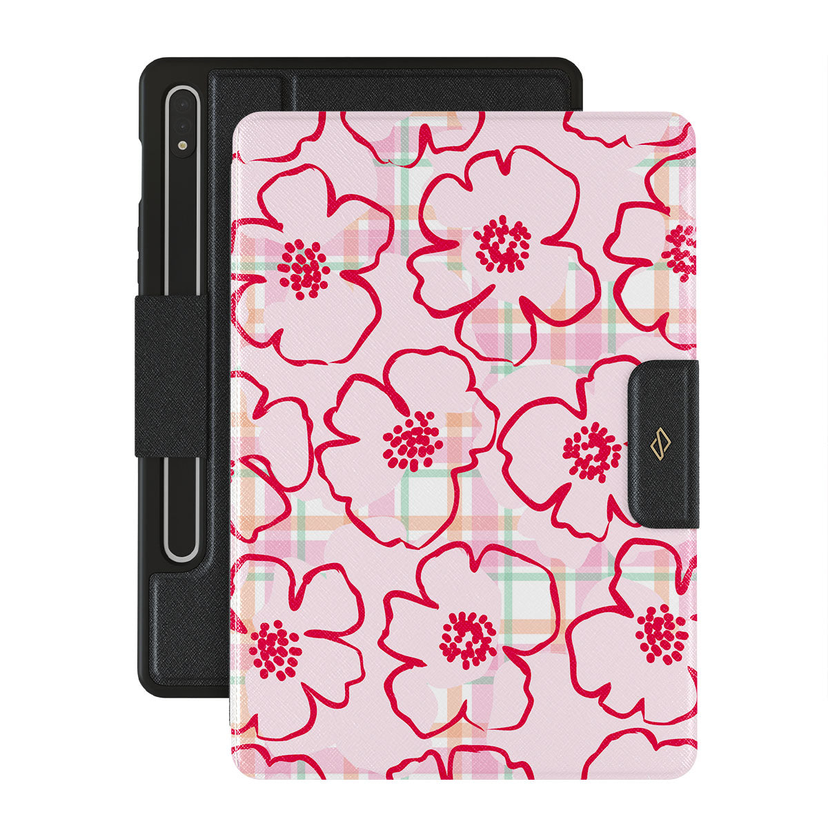 Pink flowers bloom from this Samsung Galaxy Tab S9 FE folio case design—just like the ones you’d pick and put in your hair, simple and pretty, turning every walk through the garden into a fairy tale.