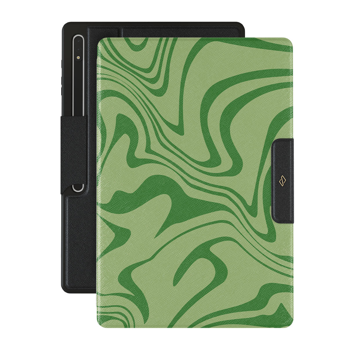 Our Funky Sensation Samsung Galaxy Tab S10 Ultra folio case design is a perfect abstract piece for those who love soft pastel colors but still want to stand out. A sharper take on the liquid swirl design in green shades will accompany your device perfectly.