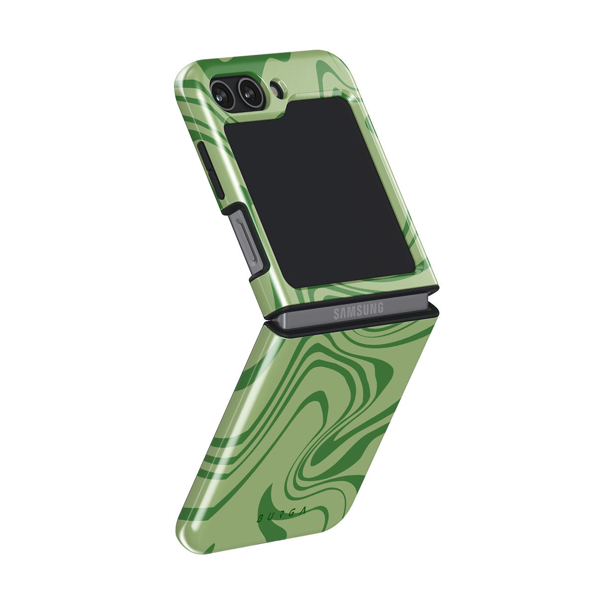 Our Funky Sensation Samsung Galaxy Z Flip 5 phone case design is a perfect abstract piece for those who love soft pastel colors but still want to stand out. A sharper take on the liquid swirl design in green shades will accompany your device perfectly.