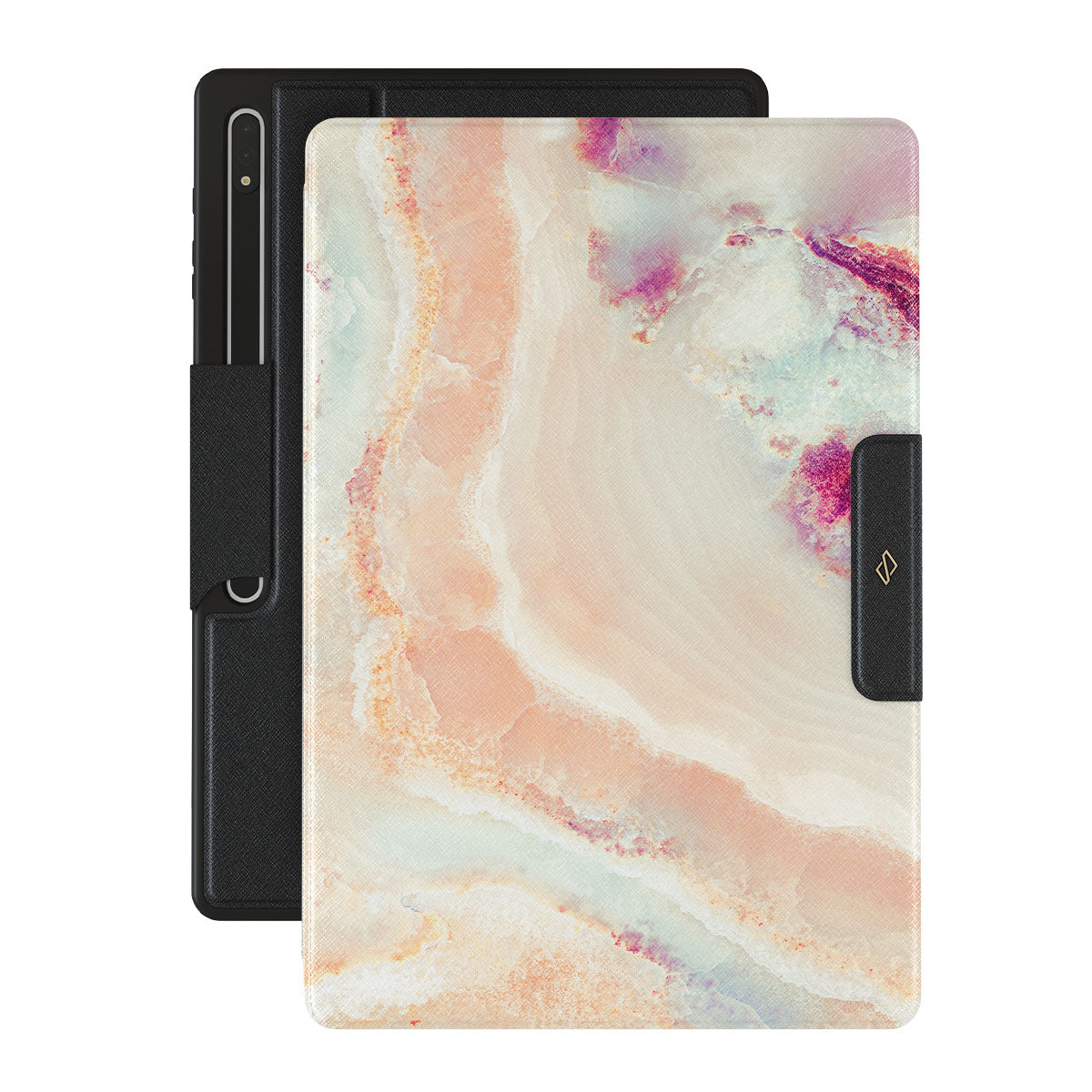 The soft color scheme of coral, pink, blue, and purple of our Berry Sorbet Samsung Galaxy Tab S10 Ultra folio case radiates soft girly vibes. The feminine touch is felt throughout the design, making it an excellent choice to add to the springtime wardrobe and protect your Galaxy Tab from scratches and falls.