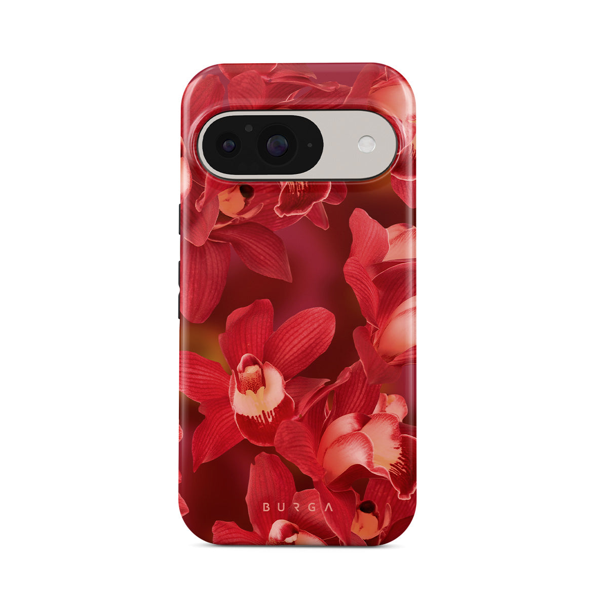 The deep red orchids emerge with a passionate intensity, evoking the fervor and depth of emotions that come with fully experiencing life. They are a vibrant call to embrace every heartbeat, to live deeply and love boldly. Discover the Goddess Energy Google Pixel 10 phone case design.