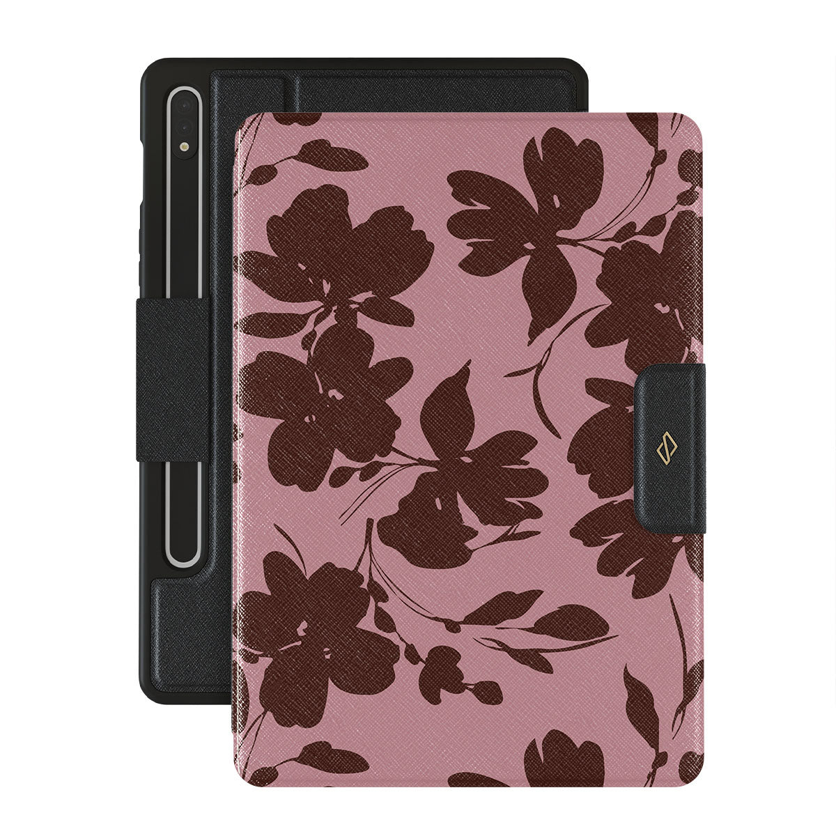 Quietly bold, our Gossip Samsung Galaxy Tab S8/S7 folio case design speaks volumes in subtlety. A soft rosé background, layered with deep red-brown floral accents, gives off a refined, almost mysterious vibe. It's for those who let the details do the talking.