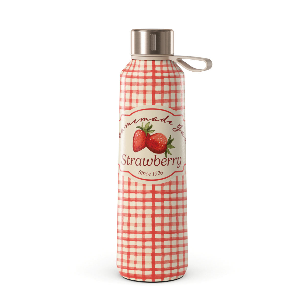 This design features: strawberries, gingham checks, jam label illustrations, vintage food graphic
