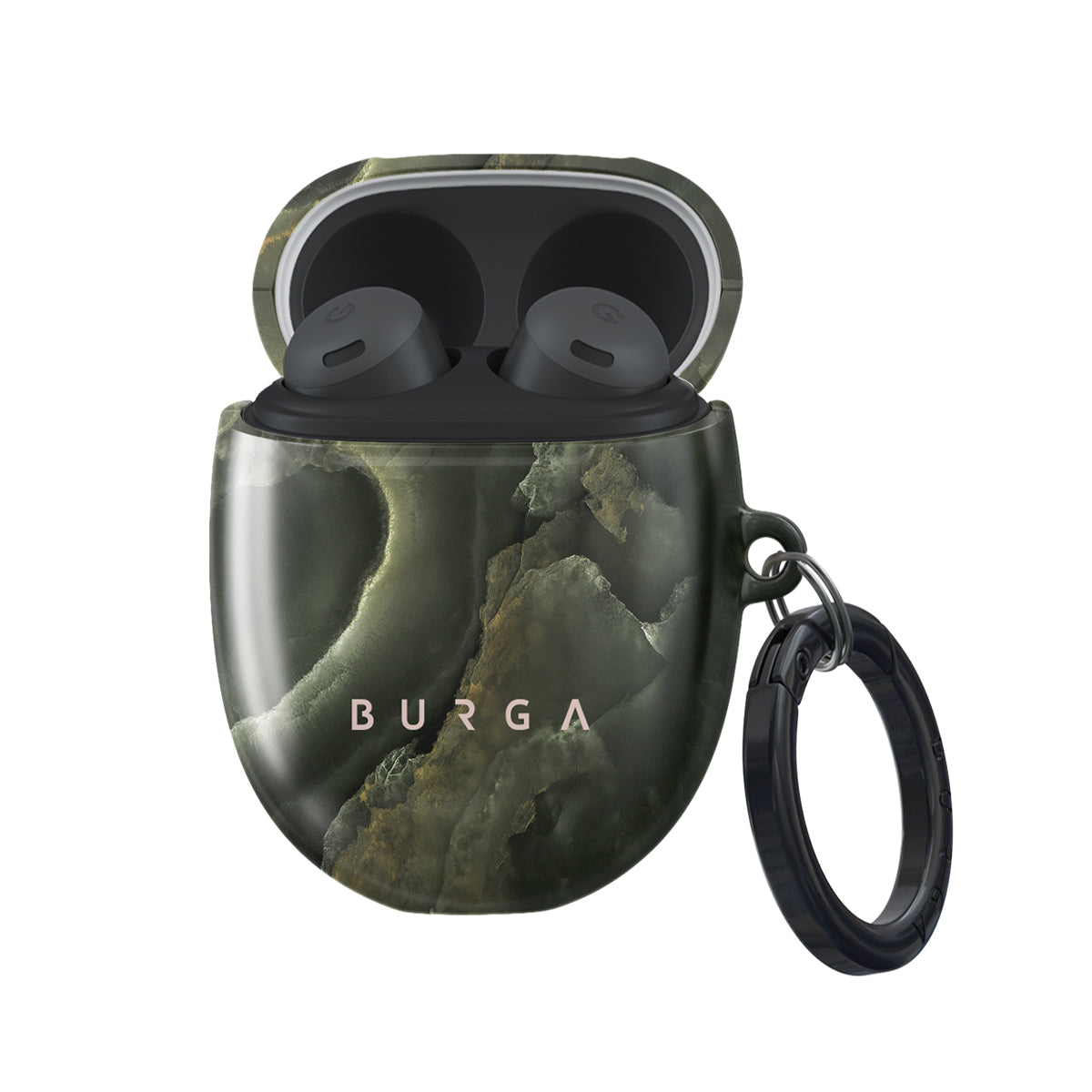 The Misty Forest Google Pixel Buds Pro case cover combines several deep green shades into a green marble dream, making y Our case stand and become a fashion piece instead of just being your usual and boring protective case. Our case fits perfectly snug around Google Pixel Buds Pro . “Like a glove!” one might say. And it won’t disrupt the wireless charging capabilities of the newer model. There’s even an LED light indicator to prove it (don’t worry, wired charging still works, too). When fitted, the BURGA case will protect the delicate Google Pixel Buds Pro case beneath it from scratches, bumps, and drops while remaining scratch-free itself. Our signature design pattern prints are High Quality, and will never peel or fade away- thanks to our unique printing technology. And finally, a handy carabiner is there to make your life easier and more convenient: just snap it around your keys or belt loop and tackle the day head-on. Your music is right there by your side when you need it.