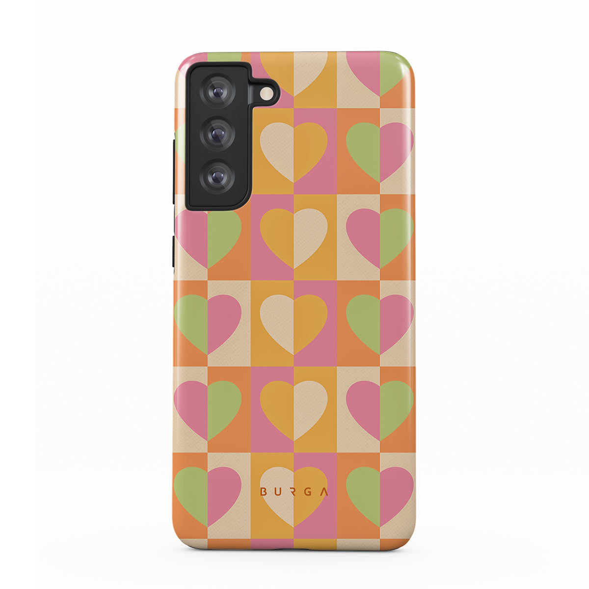 Beautifully geometrical and lovable Summer Love Samsung Galaxy S21 FE phone case combines a soft pastel color scheme with a playful square heart pattern. Adding a touch of love to your style was never easier! Keep your phone as safe as you keep your heart in a cheeky checkered protective phone case!