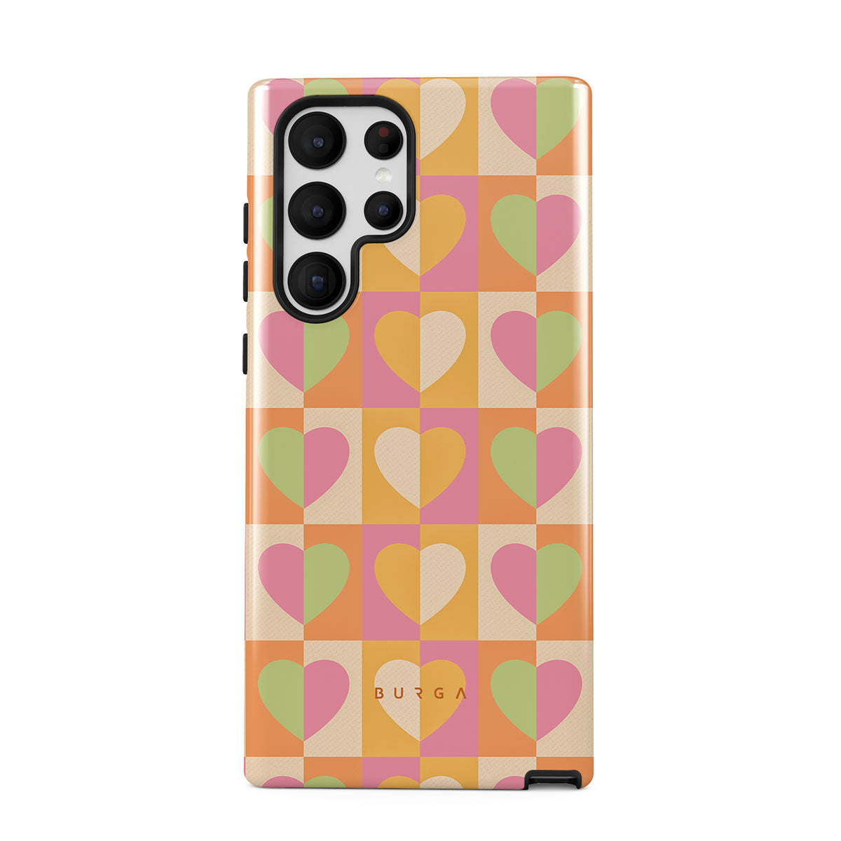 Beautifully geometrical and lovable Summer Love Samsung Galaxy S22 Ultra phone case combines a soft pastel color scheme with a playful square heart pattern. Adding a touch of love to your style was never easier! Keep your phone as safe as you keep your heart in a cheeky checkered protective phone case!