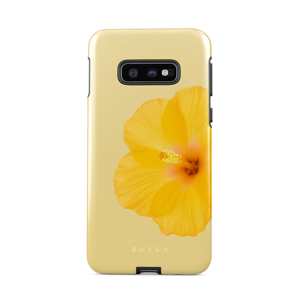 Our bright yellow Samsung Galaxy S10E phone case features bold, beautiful flowers that evoke a sense of nostalgia and happiness. This cheerful floral design captures the essence of joyful moments, making your device a reminder of sunny memories. Perfect for brightening up your day.