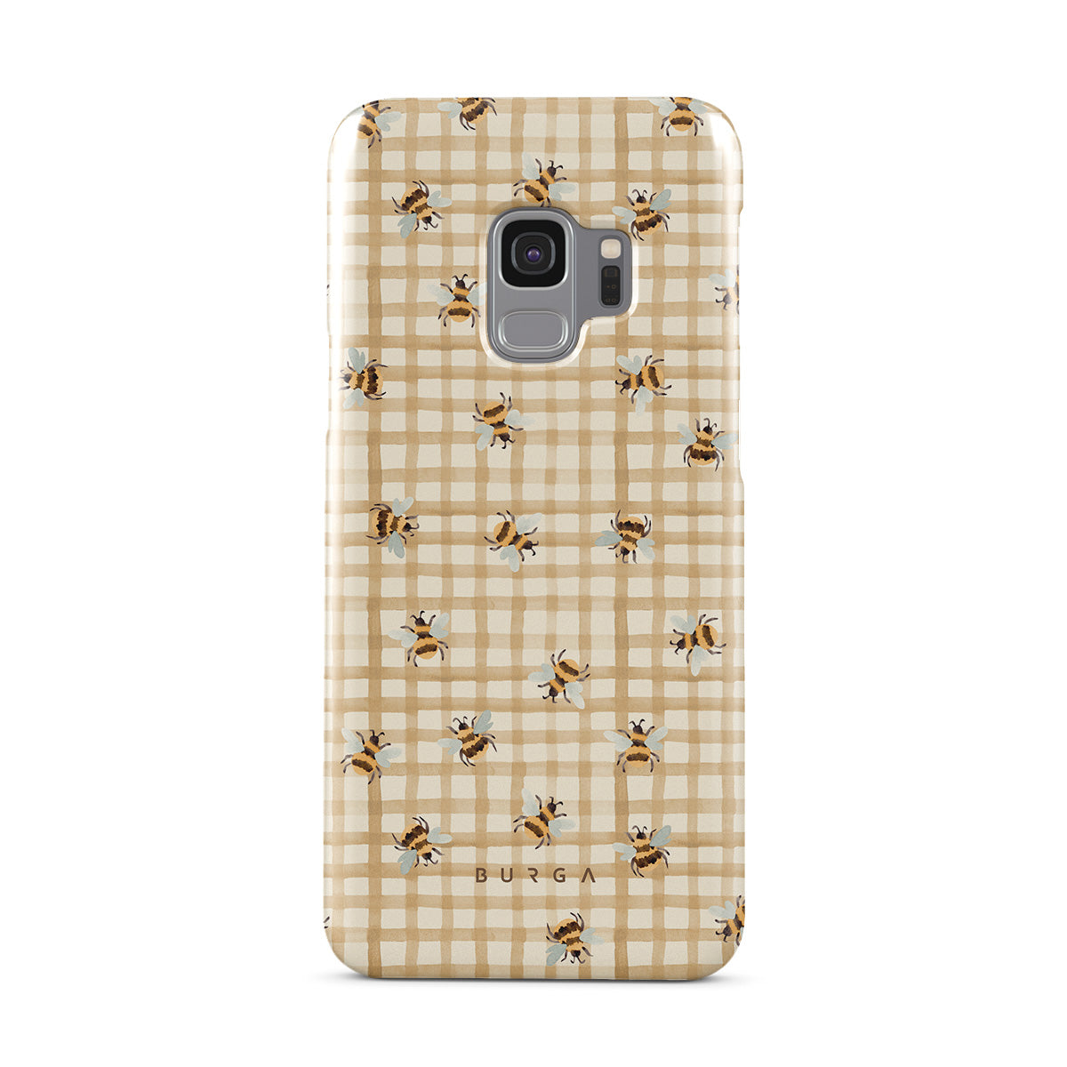 The Samsung Galaxy S9 phone case design is sweet without being cutesy. Bees and checks, yes, but it reads more clever than precious, like nature with good graphic design instincts.