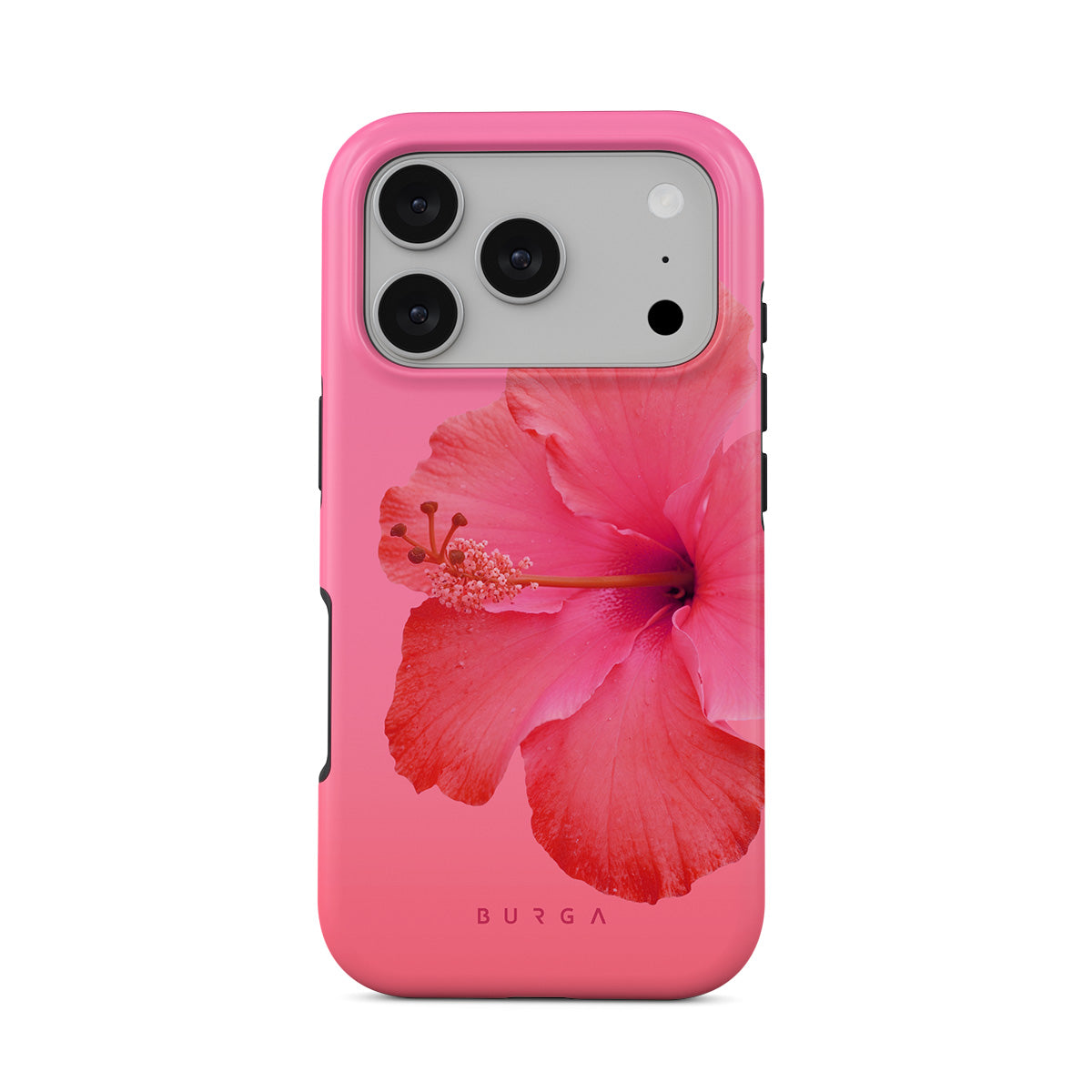 Our Island Girl iPhone 17 Pro phone case design bursts with the fiery red of a hibiscus in full bloom against a dreamy pink backdrop. Perfect for those who embody the spirit of a sun-kissed island retreat.